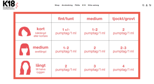 Såg att ni skrivit till andra att ett pump motsvarar 1ml men på min burk står det att tre pumpar motsvarar 1ml. Vilket stämmer?1 produkt i inlägget Hur mycket produkt3694 visningar- Användarens roll: Kundtjänst på Lyko.Kommentaren lades 3 årHejsan Evelina 👋 Jag har kikat runt lite och hittade denna bilden på K18 egna hemsida där dom beskriver hur mycket mängd man behöver beroende på vilken hårlängd man har.💜✨ Jag la in bilden här nedan om du vill kolla in den.🤩