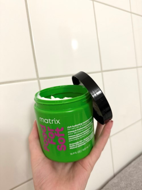 Wow vilken hårmask! Produkten är berikad med avokadoolja och hyaluronsyra vilket tillsammans skapar en fantastisk fuktgivande produkt. Hårmasken är väldigt tjock vilket för min del gör att det inte krävs en större mängd produkt. Hårmasken är generös med produkt och innehåller 500 ml, vilket för mig kommer räcka oerhört länge! Håret upplevs otroligt mjukt och glansigt. Det enda som behövs är 3-5 minuters verkningstid, efter 5 användningar började jag märka av en positiv förändring på mitt hår! Det var inte lika torrt och livlöst längre. 🤭 Produkten erhåller ingen färg och doftar åt det fruktigare och sötare hållet. Produkten får 4/5 ⭐️. Hade varit toppen med en lite vattnigare konsistens då håret kan upplevas en aning fettigt om man råkar ta för mycket produkt. #Matrix #Lykotestpilot1 produkt i inlägget Salongfint hår!530 visningarEvelina