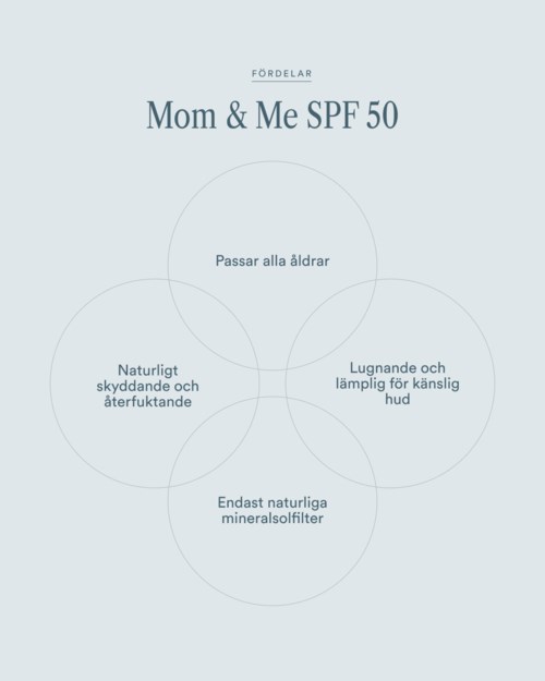 Mom & Me SPF 50 innehåller 100% mineralfilter och skonsamma, hudvänliga ingredienser - säker och effektiv för hela familjen. Inga syntetiska konserveringsmedel. Inga doftallergener. Bara enkelt, effektivt skydd du kan lita på - varje dag.1 produkt i inlägget Mom & Me SPF 50213 visningar - Inlägget skapades 5 månader