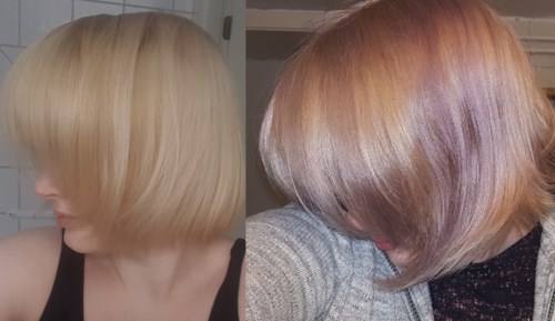 Eftersom mitt hår har varit slingat innan vart resultatet sådär. Silver-askigt med lila slingor (hade guldiga pigment i håret och dem vart askiga istället för pastel lila) , men till skillnad från många andra färgbomber var dennna betydligt drygare och mindre uttorkande på min hår kvalitet (tjock blekt glas hår) så jag får testa lägga på mer nästa gång. Jag vet att toningar utan väte/ammoniak tar inte upp lika mycket pigment (och framför allt inte på hår där allt glider av. Maria Nila brukar bara sitta i två tvättar och även blonderingar verkar vilja tvättas ut av någon anledning..), så vart jag ändo hyfsat nöjd. Ingen produkt som skadar håret om man lägger på mera. Blandade 4/5 inpackning och 1/5 Steel lavender och lät det sitta i 15 minuter i halv-torrt tvättat hår. Får nog öka mer färg nästa gång. Hållbarheten vet jag inte, min på mitt hår brukar sådana här produkter sitta i mindre tvättar än vad som står på förpackningen --- om det inte är en mörk eller knallig färg!1 produkt i inlägget Blir lätt slingit- Inlägget skapades 5 år