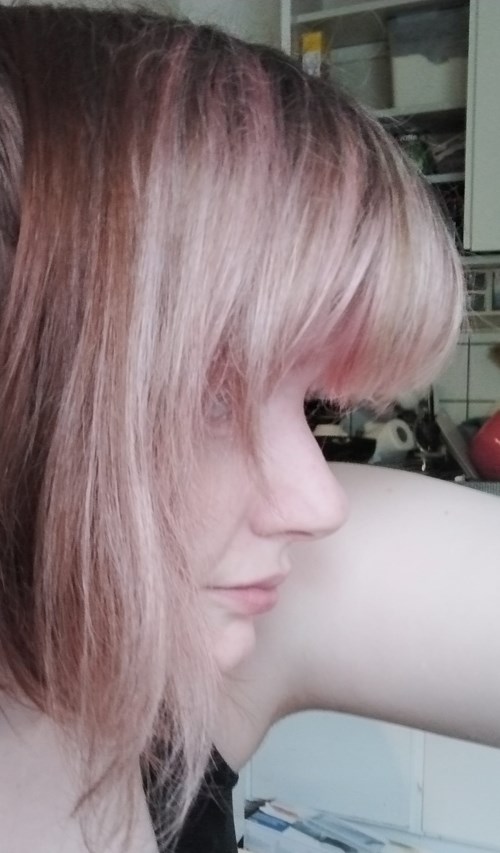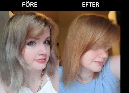 Hej (ursäkta för lång fråga, hah). Jag har försökt att upnå nivå 10/11 pärlblond på mitt hår men eftersom jag har mörk askblont "glas" hår har jag blekigt med hår två ggr sedan maj (först helbläkning med Oalia och sedan slingor med glam lights) och blekningen verkar villa stanna på 8/9 guld blond (bild). Jag har Schwarzkopf ignite 9-5.1 toning hemma men funderar göra en "svagare" blekning ("bleach bath" med shampoo) innan jag lägger in toningen. Jag var rödhårig förra året och har en kopprig missfärgning i längderna som inte gå ur som jag vill få bort innan jag tonar det., men vill inte göra en till fullblekning i längderna. Skulle denna funka att blanda ut eller annan rekomendation för att få bort den sista av det koppriga? (alltså i längderna, inte utväxten, tänkte göra botten färg hos en friös om ett par månader). Silver shampoo funkar inte (testat i 30,60min) och svart+rosa färgbomb från Maria Nila brukar göra håret metall grönt.1 produkt i inlägget Jämna till redan blekt hår?3943 visningar- Kommentaren lades 5 årJag valde att chansa iaf. ^^ Jag blandade ut den med inpackning och lät det sitta i 15 min och jovist den funkade. Fick bort det koppriga skiftningen i luggen och vart lite ljusare och mer en ljusgul blond nyans istället för koppar-guldigt (vågade inte ha i den för länge för jag hade redan blekt. ska ändå tona det gula).. :D2 gillar