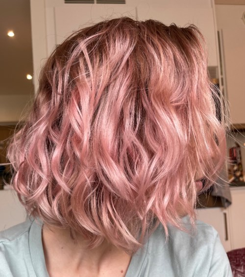 Testade Pink pop, blandade med white mix. Hade i torrt nytvättat hår ca 15-20 min. Halva mitt hår är tidigare slingat och där satte sig färgen bäst, men det satte sig även i min naturliga hårfärg, framför allt där jag var som ljusast. Mycket försvinner efter första tvätten. Men kul grej att testa istället för att färga! Jag blandade typ 60% white mix och 40% Pink pop. Första gången glömde jag kamma igenom håret och då blev det rätt ojämnt. Inte fult, men ojämnt. Andra gången (på bilden) kammade jag igenom och det blev så mycket bättre. Lite dyrt med tanke på hur mycket produkt jag behövde för hela håret, första gången gick nästan en hel liten burk white mix åt för att jag skulle kunna täcka hela håret, och då har jag kort hår. Men som sagt, kul grej att testa. Luktar gott, gör håret lent och har inte irriterat min rätt så känsliga hårbotten :)1 produkt i inlägget Härlig rosa nyans
