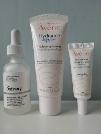 24 produkter i looken Nyårslooken 2021 🌟🖤💚🤍🌟 - Inlägget skapades 4 årJag kör med en enkel hudvård då jag upplever att min hud inte riktigt klarar av allt för mycket. #theordinary + #avene blir för mig 🌸 Jag applicerar the ordinary's niacinamide + zinc som första steg både morgon och kväll. En droppe på varje kind. Mitt tips är man man inte ska applicera det som en kräm, dvs inte strykas runt, utan att man istället klappar in den på huden 🌟 denna har gjort under för min hud, hade utslag framförallt på kindbenen som aldrig gick bort, hade haft dessa i flera år. Det försvann på ca 4 månader med serumet! 🙌🏼 Min ansiktskräm är från Avéne, "Hydrance light" (finns både med och utan SPF samt i Rich som jag ibland byter till). En lättarbetad och fin ansiktskräm för normal till kombinerad känslig hud. Doftar fräscht och lugnar min hud, kör med den både på morgonen och kvällen. Från Avéne använder jag även deras ögonkräm "Soothing eye contour cream". Älskar denna ögonkräm och det enda som hjälp mot eksemen runt ögonen. Lugnar huden och utslagen och huden runt ögonen känns och ser återfuktad ut. Hoppas nu att Lyko tar in dessa två produkter från Avéne 🌸272 visningar