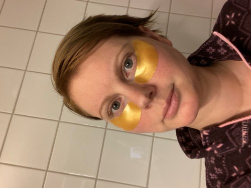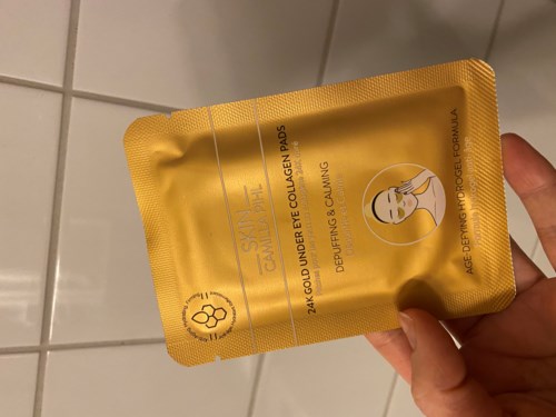 Ja ögonmask va ju spännande! Härligt med tre set i förpackningen. Lite svåra att få loss ur lilla plastpaketet bör man skulle packa upp dem men kladdet i produkten gjorde att det sägs fast på fingret tillslut! Och det fäste ordentligt på huden under ögat. Ingen risk för något att glida ner inte! Jag antecknade lite under tiden jag hade dem på mig ” Kladdiga. Svåra att få upp. Sitter kvar bra. Liksom ”fäster” mot huden. Doftar gott. Kyler under ögonen och känns fuktigt”. En ganska bra sammanfattning känner jag. Så resultatet? Just nu i feber och influensatider så kändes det ju oerhört lyxigt med guld under ögonen. Kan dessa trolla bort mina gråblå påsar under ögonen? Jag har lagt in före- och efterbild. Jag tyckte mig ana en lite uppljusad effekt och helt klart återfuktad hud under ögat! Dock så fick jag som röda fläckar upp mot näsan. Men de försvann efter kanske 10 minuter. Kändes inget konstigt eller så. #lykoinflutester #camillaphil