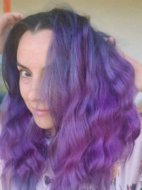 Som #lykoinflutester fick jag ett ashäftigt bonusuppdrag som verkligen är right up my alley, nämligen möjligheten att få tycka till om ett färgbombat schampo och balsam från #CelebLuxury ! Mitt hår är ju flerfärgad (blått och lila) och jag valde de lila produkterna i serien då det ändå är den dominerande färgen just nu. Detta balsam är vackert lilablå till färgen och luktar helt ok gott! Det är fritt från bland annat sulfater och parabener samt är 100% vegansk- toppennice 🖤 Jag använde det efter att ha tvättat håret med schampot i samma serie och lät det verka i ca 20 minuter innan jag sköljde ur. Håret känns det inte så mjukt under tiden, men det gick faktiskt att kamma igenom med en bredtandad träkam! Produkten fördelades jämnt och håret blev fräscht! Dock upplevde jag håret som lite strävt när det hade torkat, vilket jag inte älskar, men dag 2 känns det mjukare igen! Och nog tusan piffade den upp färgen!! Som ni ser på bilderna började min färg bli lite urtvättad och topparna hade börjat gå från lila till blågrå (fast även det är snyggt ibland!). Topparna är återigen lila och hela håret lyser vackert av färg i solen! Produkten får en 4 då den gör sitt jobb men är rätt saftigt dyr för min smak, speciellt om man vill köra denna + schampo! 😰😰 MEN då ska man komma ihåg att man inte ska ha dessa för dagligt bruk utan vid de tillfällen man känner att färgen behöver en boost! Jag tror därför att flaskorna kommer att räcka riktigt länge!! Helt klart värt att prova om du vill kombinera hårfärgning med hårtvätt och hårvård! 🖤💜🖤 (Kaffefläckarna på tishan i sista bilden ska va där, ok?!?! #dontwalkanddrink 😜)