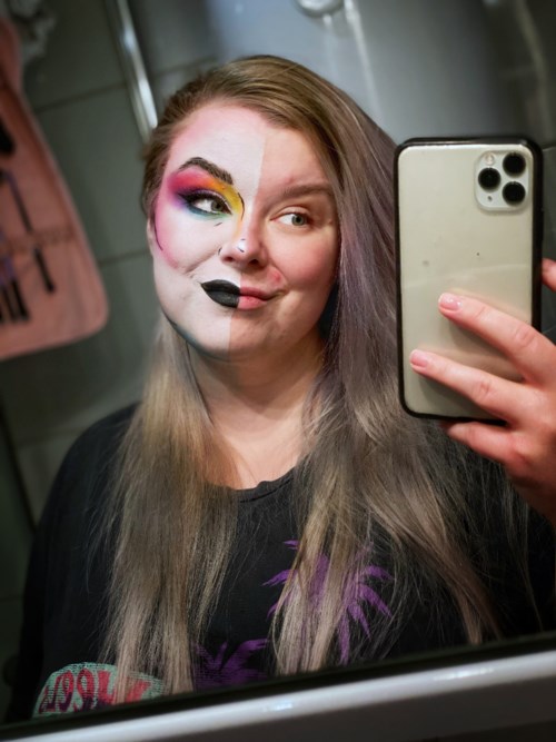 De senaste två åren, ironiskt nog då pandemin drog igång, har varit en lång och konstig resa. Mycket hände och till slut rann min ”bägare” över… men under resans gång, som har inneburit många fall och även återfunnen kärlek för estetik, har jag äntligen fått reda på varför det blev som det blev. Och nu, nu ska jag bara försöka acceptera den jag är och vara snällare mot mitt inre än vad jag har varit tidigare. Jag må se ut som vem som helst helt osminkad, men inombords känner jag mig som något helt annat. ✨Hej och välkommen mitt nya ”annorlunda”-jag!✨ #drankerstjerne #alsoperfect2215 produkter i looken 🎭2471 visningar - Inlägget skapades 3 årALSO ME, ALSO PERCECT! 🎭👌 Jag var ung på 80-talet och då var det blå kajal, blå mascara, rosa rouge och idomin på läpparna som gällde! Jag ska inte säga att jag fastnade i just den looken men när jag sminkade mig så var det oftast kajal, mascara och något på läpparna, sen var jag ready to go! Jag har alltid haft ganska bra hy och har känt mig bekväm i mitt ansikte oavsett smink eller inte. Det är inte förrän de senaste åren jag börjat få pigmentförändringar, rynkor och börjat se lite trött ut, så även om jag går osminkad för övrigt så tycker jag om att ha lite foundation eller en färgad kräm i ansiktet, för att se mer levande ut! Mitt sminkintresse tog inte fart ordentligt förrän 2017, då jag inte hade plats för att måla mina oljor och akvareller längre så istället började jag måla på mig själv! 😅🎨 Jag älskar färggranna ögonskuggor och matchar det oftast med ett rött läppstift. Att sminka mig gör mig glad och jag tycker verkligen om att matcha smink och kläder, naglar och örhängen! #alsoperfect22 #drankerstjerne #alsomealsoperfect