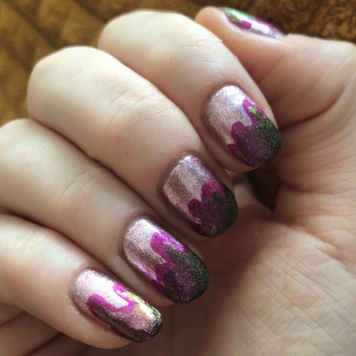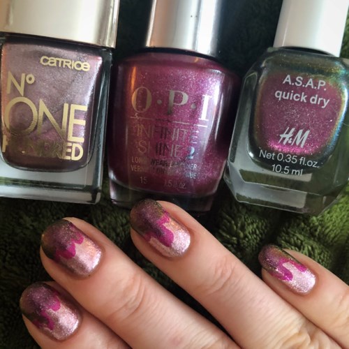 Pysslade lite i helgen! 💅🏻 Använde Depend: Peel Off Base som skydd runtom naglarna med ombre/mönster, samt makeupsvamp för att dutta på lack. • Ombre 1 = Sky Hi by Lyko + H&M: Chocolate Fondant • Ombre 2 = Sky Hi by Lyko + nailmatic: Faye • Härlig, rosa holo = OPI: Mylar Dreams • Chevron = Faye + Mylar Dreams + vinylmallar Vänster ringfinger & tumme blev (tyvärr) bra exempel på vad som händer med fades om topplacket åker på lite för snabbt, oops..🫠 Sen återstår mitt tips om att blanda Jojoba- & E-vitaminolja ~70/30 i rengjord serumflaska; så praktiskt att droppa & smörja nagelbanden vid behov! ✨ #EllinorsNaglar