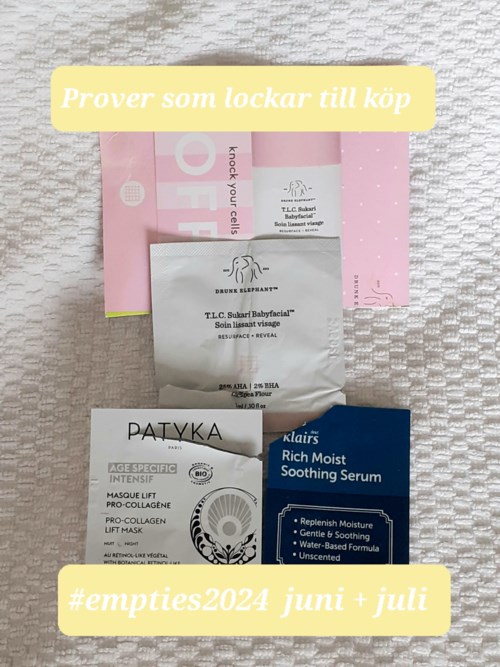 Här är min närmast osannolikt sena laddning med #empties2024 juni/juli😅 Pga problem med närminnet (s k "hjärndimma" för den som är bekant med det) lyckades jag även slänga nästan allt INNAN jag fotade🤪😥 så blir bara en uppräkning o några nästan tomma bilder👎😅 Om mig: 54 år men få ålderstecken i hyn - än så länge😉 Jag har torr, tunn, lite känslig porslinshy så använder mkt stärkande, närande och lugnande produkter☺ 🌟FAVORITER 🌟 - Nästan alla finns recenserade av mig om de säljs på Lyko! 🌟Bentons mask 🌟Kocostar Leg Relax Therapy - kylande, avslappnande benmask🧊 🌟Simply When Waterwish: ljuvlig sheet mask för torr hy och när man är svullen i ansiktet. 🌟It's Skin Rose sheet mask: super för torr, känslig hy🌹 🌟Kocostar Waffle Ice Cream: mkt närande, lugnande sheet mask för torr hy. Vaniljglassdoft🍦😍 🌟c/o Gerd B2 Hair serum: ger lätt stadga till fint hår. 🌟Yves Rocher Botanical balm för fint/skadat hår: leave-in som också ger stadga. 🌟Rahua Enchanted Island spray - bästa saltsprayen! Tropisk doft🍍🥥🥭 ekologisk🍀 och svindyr💸😄 🌟Maria Åkerberg Hand cream - läker även såriga läppar, förutom händer! 🌟Sans Soucis Daily Vitamins Pink Grapefruit Glow vitamin C spray - ljuvligt ansiktsvatten som nu tyvärr utgått😟 🌟Sans Soucis Beauty Elixir hyaluronsyreserum💦 - jättebra o köpt det flera gr☺ 🌟Aveeno Dermexa Daily Emollient cream - mkt skön för mkt torr på kroppen. 🌟Neal's Yard Wild Rose Beauty serum - ekologiskt antiageserum med naturlig a-vitamin från nyponrosfröolja jag köpt flera gr🌹 🌟Mádara Deep Moisture Nourish Cream - återkommande dagkrämsfavvis☺ 🌟Medi8 Eyes & Lips Micellar Cleanse - tar bort ALL ögonmakeup utan att irritera mina känsliga ögon👀 🌟Comfort Zones Special Hand oil - jättefin nagel- och handolja! 🌟Beauty of Joseons solskydd, liten tub - superskönt! 🌟Forever Living Aloe Lip - lagar trasiga läppar SNABBT😊 🌟Oh K! Caffeine eye mask. 🌟Gabrielle Salvete Hangover Eye mask. 🌟Anatomicals Puffy The Eye bag Slayer - normalt sett jättebra ögonmasker mot svullna ögon men nu var några torra redan när jag fick dem👎💸 🌟Apivita Express Eye Beauty gingko biloba eye mask - jättefin, oparfymerad krämmask! 🌟Essence Hydra gel eye patches. 😊OK - MEN KÖPER KANSKE INTE OM😊 😊LR00 Micellar water. Oparfymerat micellärvatten till mkt bra pris🤑 😊Dermosil Hand & Nail Serum - lätt handkräm. 😊Dermosil Silver Treatment: snäll hårinpackning som tar bort gula toner hos blekt el slingat hår💜 😊Batiste torrschampo Plus. 🧴PROVER SOM LOCKAR/LOCKAT TILL KÖP🧴 🧴Drunk Elephant TLC Sukari Baby Facial - svindyr💸 kornfri peelingprodukt med hela 25% AHA, 2% BHA och kikärtsmjöl som var perfekt för min mans konstiga hy på näsa o panna. 🧴Patyka Pro-Collagen mask - ljuvlig ekologisk nattkräm/ nattmask, också svindyr☺💸 🧴Klairs Rich Moist soothing serum - lugnande fuktserum. ⚠️NEJ⚠️ ⚠️Purederm Black Solution Hydrogel eye patches - normalt sett jättebra men de här hade gått ut för ett halvår sen och var torra o ramlade ner i frukostfilen🤥🤨 Så går det när man köper på rea fr tveksamma webbshoppar (ej Lyko)💸😁 ⚠️Patchology Rose eye gels - samma här👎 ⚠️Skin79 Pineapple sheet mask = noll effekt. ⚠️Essence Love, luck & dragons eye patches = dito. ⚠️The Inkey List Oat Cleansing balm - otrevlig rengöring. ⚠️The Inkey List Niacinamide serum - otrevligt, snorsegt o retande niacinamidserum. ⚠️CosrX Aloe Soothing sun spf 50 - irriterade ögonen o rullade på hyn. ⚠️Paula's Choice Replenishing Moisturixer" - silikonrik, plastluktande, ineffektiv kräm. ⚠️Codage Eau Micellaire - hittills enda produkten jag inte tyckt om fr lyxmärket Codage. ⛔PROVER SOM INTE LOCKAR TILL KÖP⛔ ⛔Biodroga 24 h Rich Care - för parfymerad o räcker ej till för min torra hy. ⛔Dr Schrammek Sensiderm Stress protect cream - skön, men för tunn. ⛔Comfort Zone Sublime Skin Eye Cream - för stark parfym👃🏻o inte tillräckligt närande. #empties2024 juni/juli - Användarens roll: Lyko Creator.Inlägget skapades 1 år
