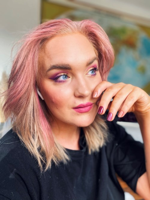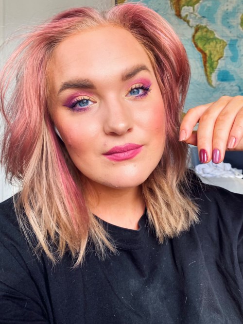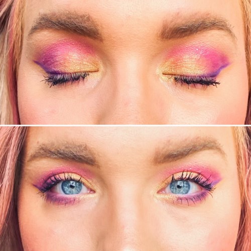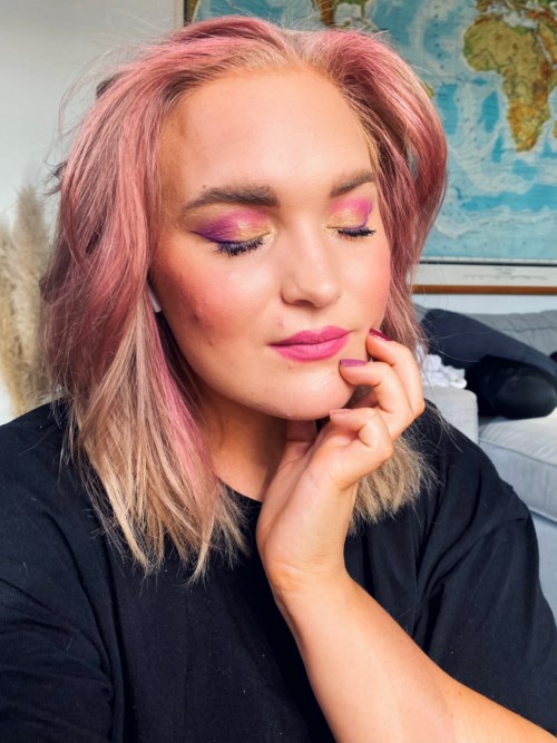Vad gör man när snön kommer och man helt plötsligt får en dags vila från trädgården? Joo man gör ännu ett bidrag till Lykos tävling för att vinna en parfym som får en att längta till sommarens återkomst! Till denna look så ville jag låta färgerna ta över och inspirationen kommer givetvis från Escadas Summer Festival! Jag har använt mig av färgerna från Makeup Revolution - Forever Flawless Constellation paletten och där jag haft: Solar till det gula Venus till det rosa Cosmic till det lila Och jobbat ihop dom tre! Längst bak i bilderna hittar ni en liten steg för steg, jag la först en ”grund” och sedan jobbade jag ihop allting steg för steg. När jag kände mig nöjd med alla placeringar så suddade jag försiktigt ihop färgerna och la även den lila linjen med lite setting spray blandat med Cosmic på borsten för att få en skarpare kant. Avslutningsvis tog jag lite av glitter från MUS och la i inre ögonvrån samt mot brynet. För att få en mer sprakande look skippade jag contour och hade endast lite bronzer för att framhäva ansiktet, sen har jag kört på med blusher för mer rosig look. Självklart blev det rosa knalliga läppar, rosa/lila naglar och givetvis lite rosa i håret! Denna trista dag blev genast lite härliga med färgexplosion! (Ja jag har fortfarande min pyjamas tisha på mig haha) Nu håller jag mina tummar för vinst 🙏🏼 #escada2021