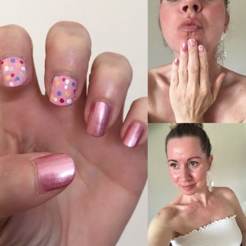 Årets 1a dag i sommarklänning, utan tights/strumpor. Lääängtat! Var tvungen att sätta blommor på naglarna oxå. Ser arg ut på fotot, men det är solen jag kisar för. Hittade inte Essie i listan, så blir foto istället. Försökte mjuka upp lite genom att stöppla/dutta lite vitt runt blommornas ena kant. Det gjorde jag med en vadd-boll som jag doppade+duttade. Vattenstickers=blommorna. Ser fram emot en skön vår, färgglada kläder o vacker natur. En härlig tid vi har framför oss🌞 Varm kram på er alla lykosar🥰 #Evastipsotrixonaglar #essie4 produkter i looken Sommarfeeling🌸🌺 - Inlägget skapades 1 år