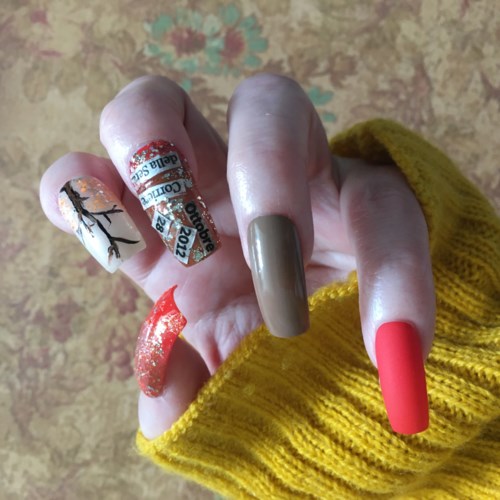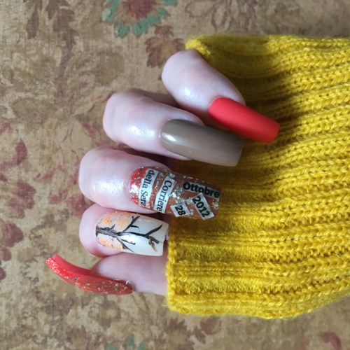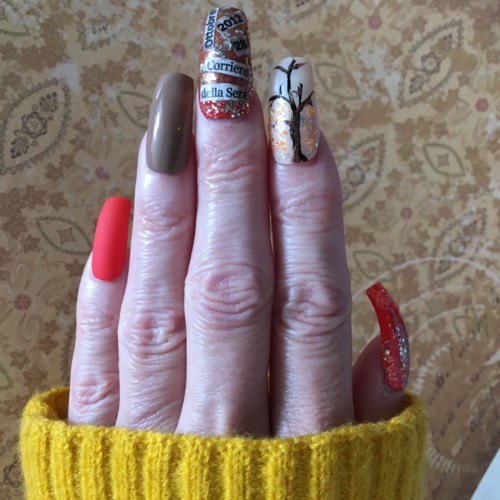 Hej alla fina Lykosar👋🏽🍂🍁🥰! All kärlek till er❤️! Igår fredag blev jag sugen på att göra lite höstnaglar! Jag har under alla mina resor till Italien samlat på mig Italienska tidningar som jag tagit och än tar på flygen dit för framtida ändamål🙌🏽😊! Och jag hittade en tidning från Corriere della sera från 28 oktober (ottobre) 2012😊🍁! Klippte ut dessa detaljer från tidningen och applicerade med pincett på nagel med topcoat🙌🏽! Och glitter såklart🤩! I looken har jag använt lösnaglar från #Depend och nya höstlack från #Mavala Rangoon och Muscat! Dessa båda lack svampade jag på tumme ovanpå orange lack för att få lite ”stämning” under glitter GlamFizz och orange fin lösglitter från Systrene Grene som jag fäst med blandat med topcoat från #nailmatic! Pekfinger har jag Mavalas Nicosia...himla fint lack😍! Trädet är målat med #essie Licorice med detalj pensel, efter duttat i lite med Rangoon för ”liv”😊! Hör har jag också duttat på med lite orange glitter och GlamFizz som symboliserar höstens ingång med sina lövnyanser! Ringfinger med vackra färgen Muscat😍! Lillfinger Orange färg ELIF #Makeupstore som jag sen topcoatat med essies Matte! Hoppas ni gilla looken och önskar er alla en superfin, bella giornata....Benvenuto Autunno🍂❤️🍁🧣🧥😍! Un abbraccio fortissimo...Stor kram och takecare as usual🤗🥰🍁 See U soon👋🏽🍂🥰 #NailsByAka