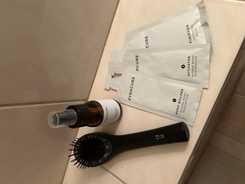 đââïž I have dry and heat damaged medium long hair. It is not treated in any way. My hair is naturally wavy and itâs very thin/fine so it gets damaged and dry at the ends very easily. I use hair straightener almost daily. đŠ The packaging The bond builder/activator/finisher is in a white package which you open at the top by ripping it off. I honestly got so frustrated with this. As you can see on the images none of these worked - I would rip them at the place where the "top lid" ended but the product would never come out! You had to always rip it much lower which sometimes made the products spill out and it would be hard to put them in the glass spray bottle. Very frustrating! The spray bottle was a bit of a hassle with washing it and drying it. The brush has a small "head". It worked ok with me brushing my hair but I did notice that after first use it already started loosing its teeth. Since my hair gets very tangled after shampooing, I started to use another brush first to detangle it before continuing using this brush. đ The texture and looks The bond builder is a white powder and the activator is a transparent liquid. After mixing them you get a watery liquid you spray all over your hair. The amount that I got was just enough to cover my whole hair length. The finisher is white/creamy balsam and it's easily spread all over the hair. It took a bit of time to wash it all out. I think it's cause the amount was too much for the length of my hair. đ The smell The bond builder+activator did not smell nice to me. Soy-y and yeasty. Cannot describe the smell, but it was not nice. The finisher smells like balsam but with undertones of something sour. You cannot smell it on your hair after rinsing it off and drying your hair and I'm glad about that! đđŒââïž The results and my opinion Usually it takes me max 40 minutes to wash and dry my hair (2xshampoo, balsam, hair mask, hair oil then dry), but now it took me an hour to hour and half to shampoo my hair, towel dry it, spray it, brush it for at least 4-5 times, wash it, add finisher, wash again, then dry it. I skipped my usual hair oil step to see how this product would perform fully on its own. It was a lot! You really have to divide a chunk of your day to do this. Was it worth it? Kinda. My hair is very soft. I also noticed that when I did this treatment it stayed clean for very long time. I usually have to wash my hair every 3-4 days or add touch-ups with dry shampoo. But after doing this treatment my hair looked freshly washed for a week! đ€Ż I was honestly amazed by this! My hair generally feels healthy, EXCEPT for my ends. While doing this treatment I would skip my hair oil step and my ends have been horrible. I have issues with dry ends that split easily and I was hoping this treatment would help with this issue, but unfortunately no. This didn't help. I will probably need to go and cut a few cm of my hair. All in all, this made my hair feel soft but a lot of hair products do this. Besides this and keeping my hair looking fresh for a week, I don't see that this is worth it in my opinion. I used other hair treatments that were cheaper and better in my opinion. And also, now I have a glowing brush that I have no idea what to do with it. đ #lykoinflutester #eyracure