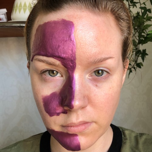 Denna lila peel off-mask är fin, skimret i den likaså – men då det bara är där för syns skull tycker jag personligen att det känns onödigt. Väljer hellre tråkiga, effektiva produkter än fina, helt okej sådana! Misstänker att jag (snart 30) inte är huvudsaklig målgrupp för detta märke. Utdrag ur texten på kartongen: ”avoid your hair because it can get sticky!”, “Look in the mirror and snap a pic!”, “[…] keep skin cute & happy.” – löjlig grej att haka upp sig på, men ge mig bara rakt på sak-instruktioner istället..🤡👵🏻 La enligt anvisning ett tjockt, jämnt lager (alltid lättare med spatel än med fingrarna!), men istället för hela ansiktet höll jag mig till T-zonen där jag har större porer & oljig hy. Under tiden kändes huden lite pirrig & varm, men inte på ett obehagligt sätt. Lavendeldoften var trevlig, men lite kraftig för min smak. Torktiden ska vara 20-30min, men där den glidit ner mot kanterna var det inte helt torrt efter ca 40min. Dock var det lätt att bara rulla av de resterna! Masken som helhet var väldigt lätt att (försiktigt) dra av, i ett stycke dessutom. 🤌✨ Plus för att den är vegansk! 🐰 Resultatet då? I pannan absorberades oljan, så porerna tillfälligt såg mindre ut. Kan inte påstå att huden kändes annorlunda/lugnad, och jag såg heller ingen uppljusande effekt eller glow. 🤷♀️ Tycker inte den här masken är värd pengarna för så klent resultat – jag skulle hellre investera i en bra BHA och använda några gånger i veckan för att hålla talgproduktionen i schack. Kommer ge min burk till nån av mina yngre kusiner, då masken säkert kan vara kul för ett kompisgäng som har hemmaspa-kväll! 💆🧖♀️ #lykoinflutester #florencebymills1 produkt i inlägget Varken mind blowing eller glowing3087 visningar- Kommentaren lades 4 årTack Cecilia! 🌸 Nej, är lite för bekväm för att pyssla på med DIY-hudvård, så jag lämnar formulerandet till tillverkarna 👩🔬😅 Men gött att den fungerar bra, och verkar så pass enkel ändå!1 gillar