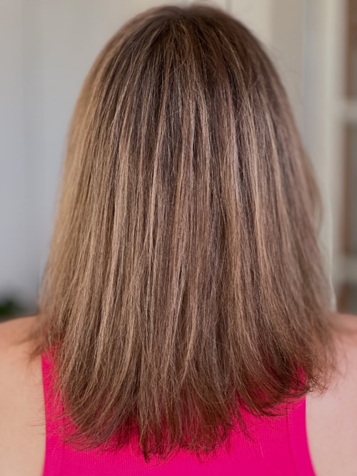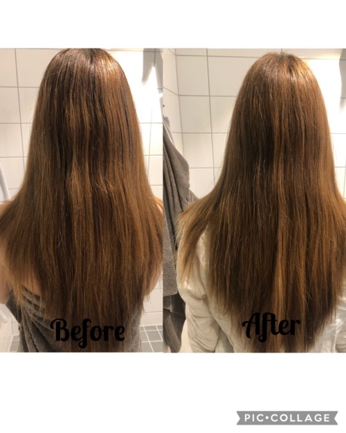 Hade ganska höga förhoppningar på den här förgade inpackningen då den skulle vara kall för ljusbruna/blonda hår. Tänkte att den hade varit fin bara för att dämpa mina slingor lite. Enligt instruktionerna skulle man ha i produkten i 5-10 minuter, men jag ville inte ha så där jättemycket färg så jag masserade bara in den i kanske ca. 2 minuter och det blev ändå en markant skillnad i både nyans och ljus. (Det är svårt att se på bilderna och det syns mer i verkligheten men på före-bilden ser man mina slingor mer och jag har svart linne och på efter-bilden har jag rosa linne) Tyvärr är produkten inte kall i tonen och den tog fram mycket röda toner i mitt hår trots att jag vara ganska neutral innan, så där blev jag faktiskt besviken. Det är absolut en fin färg, men inte det jag hade förväntant mig. Så jag är glad att jag inte hade i den längre då det kanske kommer att tvättas ur lättare. Vill du ha en varmare chokladton till håret så absolut! Men tycker beskrivningen av produkten är lite missvisande. Den gjorde i alla fall mitt hår väldigt mjukt och glansigt, så det har den i alla fall lyckats med. #testbylyko #fourreasons1 produkt i inlägget Inte kall5683 visningar - Användarens roll: Butiksmedarbetare på Lyko.Inlägget skapades 2 år