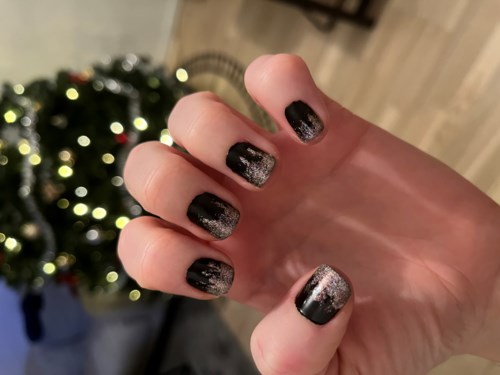 Årets sista manikyr fick bli en skimrande historia med diverse metallic-lack! 🎇 3 tunna lager av varje, för ultimat täckning. Mindes Barry M: Antique Gold som mer brons och mindre rödlila, men tycker det funkar ändå 🤷♀️ Toppade Essie: Apres-Chic med H&M: Standing Ovation, för att få in lite extra glitter! Taggar #glitterglamour2021 #ysl ändå, för det här var det närmsta smink jag orkade idag i tv-soffan 😅 #EllinorsNaglar10 produkter i looken Gradient ✨