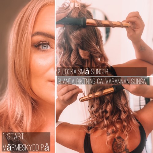 Jag fick den stora äran att få testa och tyck till om denna grymma Rose Gold Curler från Golden Curl! Och vilken rolig morgon det blev :) Ärligt talat så brukar jag sällan locka håret och de gångerna jag gör det så använder jag en plattång - detta var alltså något helt nytt för mig! Jag får erkänna att jag sneglade på en tutorial på nätet bara för att få några tips och trix, men blev förvånad över hur bra det faktiskt blev på första försöket! Handhavandet var väldigt enkelt och bekvämt, då det vridbara handtaget enkelt följer med i rörelserna. Jag höll i lockarna någonstans mellan 5-10 sekunder, vilket räckte gott och väl för att få till de där mjukare lockarna som jag var ute efter. Mitt hår är väldigt rakt. På bilden över processen ser ni utgångsläget. Jag tvättade håret igår kväll och gick och lade mig med lite fuktigt hår, därav vågorna i håret. Annars är det väldigt, väldigt rakt. Jag delade upp håret och fäste med krokodilklämmorna som följde med och dessa höll grymt bra! Mitt hår är väldigt glatt och halt och många klämmor tenderar att vara för klena för att orka hålla upp håret, men dessa höll upp håret riktigt stabilt! Handsken som följde med var toppen. Jag har aldrig använt en sådan förut så det var lite ovant att arbeta med håret i handske, men jag vande mig snabbt och vad väldigt glad att den fanns - rookies som jag tenderar att bränna sig lite om fingrarna annars :-D Ett minus är att det inte riktigt finns något bra sätt att lägga ifrån sig curlern på. Den varma delen kommer lite farligt nära bordsytan om man lägger den ner rakt av och att lägga den på en handduk eller liknande känns inte heller bra. Nu löste jag problemet genom att hänga den på dragknoppen till lådan i sminkbordet som jag satt vid. Dock hade jag nog önskat att det fanns någon fiffig hållare som medföljde! Någon kanske har bra tips annars? Med detta redskap till hands ser jag fram emot att experimentera fram nya curly-looks betydligt oftare än förut! #goldencurl #tävling1 produkt i inlägget Väldigt användarvänlig - även för rookies!876 visningar- Användarens roll: Lyko Creator.Kommentaren lades 5 årJag håller med Jessica😊...superfina bilder och levande...👍🏼💞💃!!! Tydligt och bra recension🤩!4 gillar