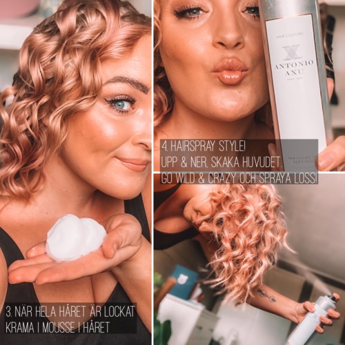 Min nya go-to frisyr är helt klart denna! Körde denna frisyr både på midsommar och även vid en av mina Looks för Lyko, I LOVE IT!!! Det bästa med denna frisyr är att den håller i flera dagar, det kvittar hur mycket det blåser storm ute eller om man flyttar benan med fingrarna konstant, om man går osminkad eller sminkad till max. Den klarar och passar till allt och ju rufsigare desto bättre! Det går dessutom otroligt fort (beroende på hur mycket hår man har såklart) och det får mitt ganska korta hår att se ut som ett riktigt Carrie Bradshaw svall. 1. Preppa håret med värmeskydd, always. Jag använder numera en från Antonio Axu som är väldigt bra! 2. Dela upp håret i sektioner, jag börjar alltid nerifrån i nacken. Locka med en ganska smal tång, små slingor och locka ca varannan framåt och varannan bakåt. Det ger håret mer liv och kommer ge det naturliga svallet! Håret längst fram mot ansiktet lockar jag alltid bakåt. Jag lockar från hårbotten så långt in jag kommer åt men sparar topparna för att lura ögat att håret ser längre ut. 3. När hela håret är lockat, låt det svalna och borsta INTE ut det. Krama i mousse i håret. Ju mer mousse desto mer struktur. Varför jag använder mousse är för att det inte klibbar håret som tex saltvattenspray. 4. Dags att spraya håret! Jag använder ALLTID en soft spray (klarar inte av att håret blir stelt), en soft spray gör också att håret håller sig lockigt men naturligt över flera dagar. Jag sprayar genom hela håret, både upp & ner, skakar håret och bara rakt över. 5. RUFSA!!! Nu är det dags att göra det magic part. Jag rufsar, rufsar och rufsar. Drar fingrarna genom håret för att separera lockarna litegrann men det är rufset som skapar volymen. 6. Klaaaart för posing och att rocka världen! (OBS, bandaget på armen är från byte av p-stav tidigare idag 😅) #antonioaxu #goldencurl