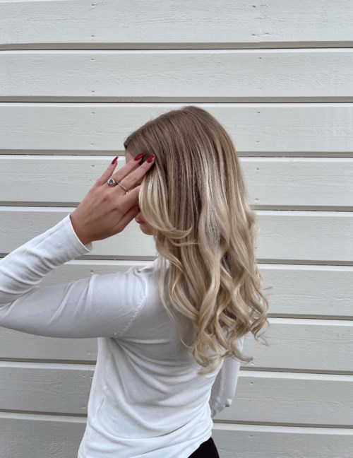 Starter med å børste håret godt for å få ut alle floker, sprayer så heat protection fra GhD i hele håret. Sprayer hver seksjon med hårspray både før og etter jeg krøller det for at de skal sitte bedre. Avslutningsvis sprayer jeg textur spray fra Eleven for å gå ekstra hold i håret og den messy looken jeg er ute etter. Helt til sist sprayer jeg shimmer spray fra Kevin murphy🤎 #testbylyko #goldencurl #store2022 #kevinmurphy #shu uemura #joico23 produkter i looken Messy waves🤎 - Användarens roll: Butiksmedarbetare på Lyko.Inlägget skapades 3 år
