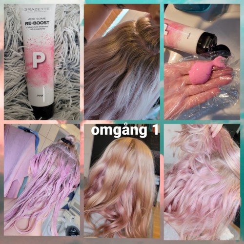 Efter att ha använt hårinpackningen i mitt blekta frissiga hår hade jag inga som helst förväntningar. Men färgen fäste i håret utan att den doftade speciellt mycket. Lät den sitta i 25 min. Redan vid sköljningen insåg jag att färgen satt sig. Är nu inne på 3 tvätten av håret och färgen håller i sig och mjukheten i håret består. #grazettetest1 produkt i inlägget Intressant2990 visningar - Inlägget skapades 4 årNu har jag testat GRAZETTE Add some RE-BOOST! Pink. Jag fegade ur lite och blandade ut färgen med balsam då jag inte ville ha för mörkt rosa hår. Det blev perfekt! Jag blandade 50/50 och lät verka i 10 minuter. Nästa gång ska jag våga ha lite mer färg i blandningen och låta det verka lite längre. Färgen har en svag doft, men det gör inget eftersom man ändå ska använda balsam efteråt. Före: jag har folieslingat hår med lite rosa färg kvar från förra färgen jag testade. Efter: det är svårt att riktigt fånga färgen på bild, håret är mer rosa än bilden visar. #grazettetest