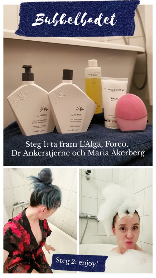Ok folks, håll i er nu för det kommer bli många små bilder i denna kvälls-spa-hudrutin-look! Är det för mycket? Nej! Hur kan det vara det när det är exakt så här det går till ibland 🤪🛁🌸! Jag tror de flesta bilderna talar för sig själv, men här kommer en liten recap ändå: Först och främst så kommer såklart badet. En liten skvätt olja från Maria Åkerberg är a perfect addition i vattnet då den gör huden gudomligt mjuk! Det är också i badet jag brukar rengöra ansiktet med min Luna 3 från Foreo och lite Wash the day off från Dr Ankerstjerne ♡ Nu blir det L'Alga som får ta hand om håret och mer om dessa produkter kommer i recensioner framöver 😋 Efter badet snurras håret upp i designerad handduk med knapp och det blir dags att sköta om hyn! Detta är den vanligaste rutinen, när jag inte är mitt i att pröva massa nytt som influtester 😋. Har verkligen fastnat för Ole Henriksens produkter men också förälskat mig i Dr Ankerstjerne, som jag lär testa mer av så småningom! En liten liner med Revitalash blir det ca varannan dag numera (den har boostat färdigt och nu är det underhåll som gäller). När ansiktet är klart släpps håret ut och lite härlig spray från L'Alga sprayas på! Jag kammar med min favvoborste som är av okänt märke då loggan skavts bort 😅 Sen brukar håret få självtorka (oftast). En sista titt i spegeln med en grimas eller två för att säkerställa att man fortfarande är lite tokig - et voila! 100 år senare är man redo att gå och lägga sig! Och ta mig tusan vad ren, mjuk och omhändertagen man känner sig 👌🏻😄🥰 #lykoinflutester #homespa #hudvårdsrutin #olehenriksen #drankerstjerne #revitalash #mariaåkerberg #lalga