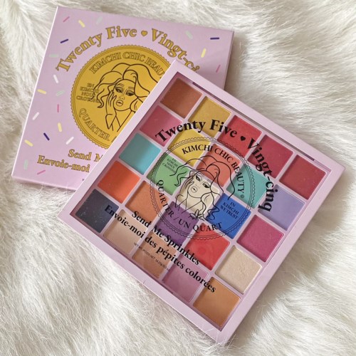 25 blandade skuggor (Send Me Sprinkles) – 18 matta, 4 skimmer & 3 glitter. Jämn fördelning av varma & kalla toner, lite fler varma men det funkar alldeles utmärkt för min del. Knappt nån fallout, och de blendar bra på ögonprimer. Sitter kvar där de ska i timtal, hooded lids be damned! Lite klent pigment i vissa, jämfört med nyansen i paletten, men det går att bygga upp – och med vit primer under poppar färgerna mer. Gullig förpackning, känns som standard för varumärket. Det enda jag egentligen saknar är nån fler mörk färg; hade lite svårt att deepen the corners så fick till viss del nöja mig med mina ”naturliga skuggor”. Går ju såklart att ta från annan palett, men vill man inte t.ex. ta med sig fler än en..🤷♀️ Lite trist också att nyanserna inte har namn, trodde först att det stod på baksidan men det var bara vilka som är pressade pigment osv. Man kan ju inte få allt! Priset känns rimligt, 15.60:- per skugga liksom, i fin förpackning dessutom. Rekommenderar! #KimChiChic #lykotestpilot