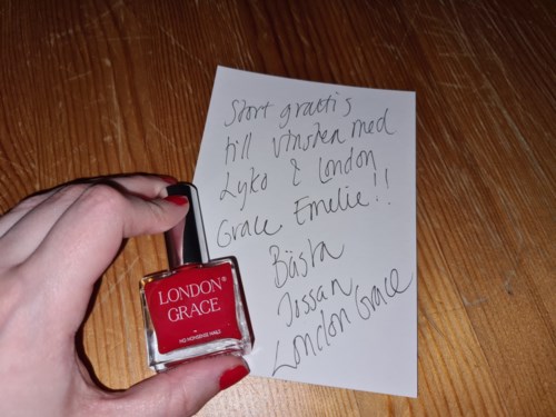 - Inlägget skapades 4 årIdag fick jag mitt nagellack som jag vann från London Grace i färgen Valentine. Dessutom kom den med en fin liten hälsning <3 Så glad! #londongrace #valentine69 visningar