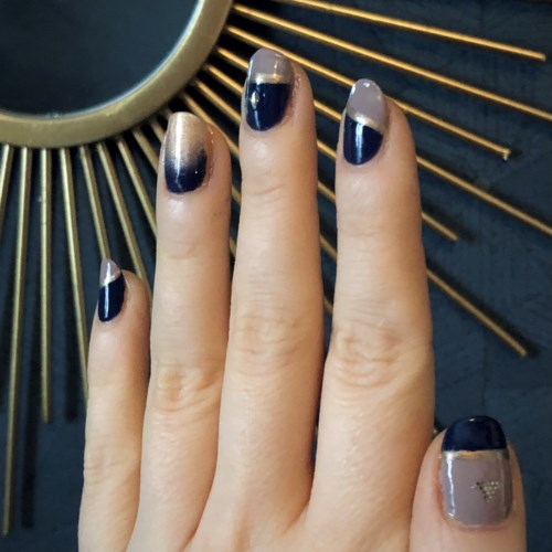 Fick ta ner naglarna igår då flera av dem hade små hack i kanterna, så hellre fram med filen än att de smäller av... Har dock fått testa fina lack från London Grace, så det vägde upp för kortare naglar! 🌟 Vänster hand fick bli lite piffigare, och höger mer neutral 💅🏻 • Oxford är en snygg, well, Oxfordblå (”the official colour of the University of Oxford.” /Wikipedia) nyans – mörkt azur, men utan att se svart ut. Täcker med antingen ett tjockare lager, eller två tunna. • Heather är en perfekt ”greige” färg: i vissa ljus är den grå, i andra beige. Samma med den, 1-2 lager! • Clare = snyggt guldskimmer! Behövde 3 lager för att få full coverage, precis som med många andra metallic-lack. 🏆 Målade Oxford som bas, och så Heather upptill (runt kanten också, för hållbarare manikyr). Frihandade guldstrecken med Isadora Nail Art Brush – verkar inte finnas här på Lyko, däremot finns en Dekorationspensel från Depend! 🖌 #londongrace #londongracenordic #EllinorsNaglar10 produkter i looken Helg ↔️ Vardag - Inlägget skapades 4 år