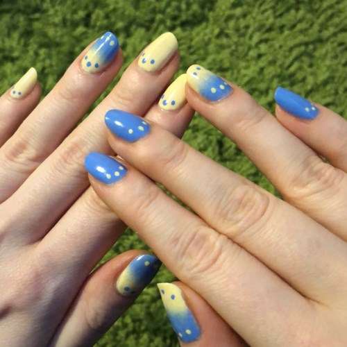 Det fick bli lite lekfullt & somrigt den här gången! 🌞 Svampade ringfinger- & tumnaglarna – får lite strand & vatten-feeling av dem, även fast jag är världens skuggigaste badkruka 🏖🦐 Prickarna gjordes med en hårnål som jag böjt ut så den är V-formad, lite ojämna kanske men charmiga ändå. Hade tänkt beställa Depends Nail art-kit med bl.a. dotting tool men det var slut, så man tager vad man haver! Nöjde mig med 2 lager av båda färgerna, även prickarna. Den gula täckte bättre den här gången dessutom, målar stadigare med höger hand helt enkelt. 👩🎨 #londongrace #londongracenordic #EllinorsNaglar9 produkter i looken • P o l k a d o t s •679 visningar - Inlägget skapades 4 årBetyg: 4 av 5Verifierad testare