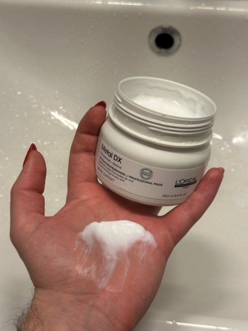 Efter att ha använt Metal DX Mask i samband med schampot från samma serie är jag mycket imponerad av resultaten. Direkt efter applicering känns håret mjukare och betydligt lättare att kamma ut. Det silkeslena resultatet gör att håret ser välvårdat och friskt ut. Mitt hår känns märkbart starkare, och jag har upplevt färre brutna hårstrån sedan jag började använda masken. Kombinationen med schampot verkar verkligen ge en djupvårdande effekt och får bort alla mina gula oönskade nyanser i håret. Efter användning är håret dubbelt så glansigt, vilket gör att färgen ser både fräschare och mer levande ut. Masken har en krämig konsistens som är lätt att applicera och skölja ur. Att låta den verka i endast en minut är perfekt för en snabb men effektiv behandling, vilket är särskilt uppskattat i en hektisk vardag. För bästa resultat bör masken användas efter Metal DX Shampoo. Kombinationen av dessa produkter ger en komplett lösning som stärker håret, förlänger färgens livslängd och skyddar mot skadliga partiklar. Metal DX Mask har överträffat mina förväntningar med sitt silkeslena resultat, intensiva glans och vårdande egenskaper. Den är perfekt för alla hårtyper och en särskild räddare för färgbehandlat hår. Jag kommer definitivt att fortsätta använda denna mask tillsammans med schampot för att bibehålla ett starkt, glansigt och välmående hår. #LYKOINFLUTESTER #LOREALPRO1 produkt i inlägget För ett starkt, glansigt och välmående hår 🌸 - Användarens roll: Lyko Creator.Inlägget skapades 11 månaderBetyg: 5 av 5Verifierad testare