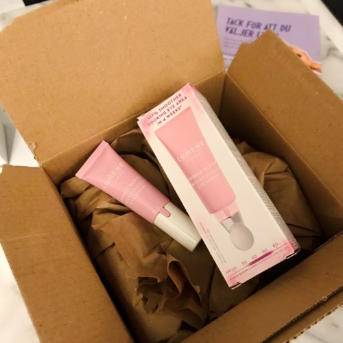 Jätteglad av att få va med i #lykotestpilot och få testa #lumenebloom vegan collagen eye serum! Om mig Mitt intresse för ögonkräm har ökat iom att jag inom kort fyller 32 år och har precis börjat se de första tecknen av fina linjer kring ögonen. Förpackningen Tycker förpackningen känns lite billig. Läste om en som tyckte locket satt för hårt, medan på min produkt så sitter den ganska löst. Metallhylsan är väl ett ja och ett nej. Jag gillar den då den underlättar applikationen och spridningen av ögonserumet. Men tycker samtidigt att den är lite onödig då jag måste ändå använda fingrarna för att serumet ska sjunka in fortare. Konsistensen Eftersom detta är ett serum är produkten ganska flytande och jag fann att det var lite för lätt att få för mycket i början. Men efter en månads användning och lite mindre innehåll är det nu mycket enklare att dosera en mindre mängd. Även om jag tycker den kändes tillräckligt återfuktande så kan en kräm över behövas. Vilket är något Lumene tipsar på förpackningen. Resultat Jag har inte kunnat ta före- och efterbilder då jag samtidigt gjort ansiktsbehandlingar som kan påverka. Men med det sagt så vart jag ändå imponerad över hur väl den återfuktade och minimerade torrhetsrynkor som uppstod temporärt iom behandlingarna. Precis innan använde jag ett dyrt ögonserum med retinyl retinoat i flera månader och tycker detta serum från Lumene gav en mer markant effekt på synligheten av fina linjer än den som kostar 5 ggr mer. Sammanfattning Definitivt ett serum värt att prova, särskilt om man är ett fan av Lumene! Det jag tycker drar ner poängen lite för full pott är priset. Då, trots den positiva upplevelsen, så tycker jag inte den sticker ut mot billigare ögonkrämer som hittas på apoteket, och att denna endast är 10ml. Sedan hade konsistensen kunnat vara mindre rinnig vilket hade gjort applikationen bättre och det skulle inte kännas som om man slösade produkt i början.1 produkt i inlägget Återfuktande Ögonserum253 visningar - Inlägget skapades 3 årBetyg: 4 av 5