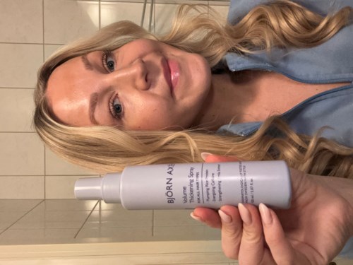 Jag har fått testa ett gäng produkter från #björnaxen och näst på tur att recenseras är Volume thickening spray. Det är en volymgivande spray med bl.a. koffein och risprotein och som ska användas i blött hår. Lite om mitt hår. ⭐️ Mitt hår når strax nedanför axlarna. ⭐️I princip ofärgat, har lite rester av blekning kvar i topparna. ⭐️Mina längder är torra och min hårbotten är lite oljig vilket gör att jag behöver tvätta håret varannan dag. ⭐️Mitt hår blir lätt frissigt. ⭐️Mitt hår har blivit mycket tunnare med åren. ⭐️Jag föredrar återfuktande produkter istället för reparerande. Doften på denna är samma som deras volume blow dry cream som jag skrev om tidigare. Doften är stark och sitter kvar länge i håret. Sprayfunktionen på den här är jättebra, den ger en fin och stor mist vilket hjälper till att fördela sprayen. Jag sprayar den i handdukstorrt hår, i hårbotten då såklart och fönar sen in den ordentligt. Den ger verkligen volym som varar och jag upplever ingen jobbig produktkänsla. Håret känns rent och fräscht med mycket volym. Rekommenderas! #lykoinflutester1 produkt i inlägget Doftar starkt men effektiv87 visningar