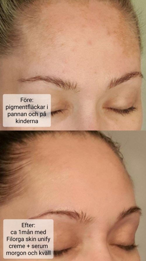 Jag får inte vackert solkysst hy eller söta fräknar om sommaren nä istället får jag stora bruna pigmentfläckar lite här och där (mest i pannan och på kindbenen) Så gissa om jag blev lycklig när jag som #lykoinfutester skulle få testa denna lyxiga creme från #filorga Den säger sig nämligen råda bot på just pigmentfläckar och hudrodnader. Med största entusiasm har jag använt cremen både morgon och kväll i ca en månads tid ( med serumet i samma serie) Cremen känns lite fetare än vad jag normalt skulle valt men trots det funkar den alldeles utmärkt som bas för min makeup. Förpackningen känns som alltid med filorgas produkter fräsch och lyxig. Cremen känns dryg och ger en vacker lyster på huden. Vilket är perfekt för de dagar man inte har tid eller lust med foundation. Den luktar mumsigt och har inte orsakt några blemmor på min känsliga hy. Men nu till det viktigaste för mig... kunde den råda bot på mina envisa pigmentfläckar?? -svaret är -JA!!! Jag är barnsligt lycklig över resultatet. Det är svårt att fånga på bild men de mörka fula fläckarna i min panna är nästan helt borta 😍 För min hy var den här cremen helt rätt , sen är det ju svårt för mig att säga om det var just cremen eller serumet som gjorde det största jobbet mot mina fläckar då jag som sagt använt dem båda flitigt. (produkterna fick såklart hjälp av att solen varit mild i oktober och av att jag även använt mild peeling ett par ggr per vecka) Jag kan väl inte sticka under stolen med att jag önskat att cremen hade en mildare prislapp men då den höll allt vad den lovade för min hy så får den ändå högsta betyg av mig 💎1 produkt i inlägget 💎 -Hejdå pigmentfläckar! 💎1173 visningar- Kommentaren lades 4 årJa nä men det är bara att inse att jag kommer bli jäkligt fattig av att läsa dina recensioner 😂 Så många guldklimpar du hittat! Man ser verkligen resultat, älskar dina före/efterbilder!!!😍 Och att du ger så fina & ärliga recensioner. Det hjälper verkligen, för att hitta rätt i skönhetsdjungeln. Hoppas du får fortsätta som #influtester för jag vill se mer från dig👏🏻🧡2 gillar