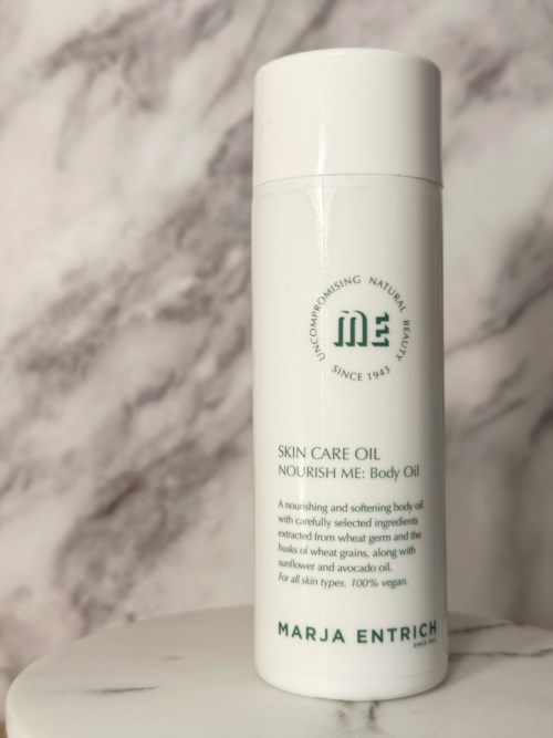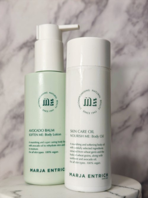I samarbete med Marja Entrich har jag fått möjlighet att testa två produkter ur deras sortiment. Jag har även tidigare fått chansen att testa deras högkvalitativa produkter och jag ville ju såklart vara med även denna gång när de sökte testpiloter. Marja Entrich är ett framåttänkande företag med en fin hållbarhetspolicy vilket återspeglas i deras produkter. Denna gång föll lotten på deras Avocado Balm ”SOFTEN ME” och deras Skin Care Oil ”NOURISH ME”. 🥰🌱 ANVÄNDNING Deras ”NOURISH ME” Skin Care Oil är en kroppsolja med fokus på att göra huden mjuk och elastisk. Enligt Marja Entrich kan användas både i ansiktet och på kroppen, men använda produkten i ansiktet är inget jag skulle rekommendera till någon som tenderar att bli tilltäppt då många av ingredienserna är tilltäppande, tilläggas bör också att den har tillsatt parfym. 🌿 Denna olja är ett bra första steg efter dusch. Jag har använt ”NOURISH ME” innan applicering av ”SOFTEN ME” vilket har inneburit att jag uppnått en perfekt kombination av både fukt och fett. Kroppsolja används med fördel innan body lotion för att dryga ut din body lotion och för att preppa huden för att efterföljande produkter lättare ska kunna penetrera huden. 🥑🌾🌻 Genom att använda kroppsolja så låser man in hudens fukt, vilket förhindrar förlust av fukt under dagen det gör huden mjukare, lenare och återfuktad under en längre tid. Oljan med sin lätta konsistens absorberas snabbt av huden utan att kladda, den är dryg och kommer att räcka länge då det räcker med bara ett par droppar för att smörja in hela kroppen. 🌟 INGREDIENSER Ingredienserna utvinns bland annat ifrån vetegroddar och skalen från vetekorn. Produkten innehåller även solrosolja och avokadoolja den är därför mycket mild och mjukgör huden. Marja Entrich produkter stilrena och lättanvända, den är 100% vegansk och mjukar upp och ger din hud extra skydd, sammanfattningsvis en superfin, medveten produkt med helt naturliga ingredienser. 👏🏻 #MARJAENTRICH1 produkt i inlägget NOURISH ME-olja 🌿💚 - Användarens roll: Lyko Creator.Inlägget skapades 1 år