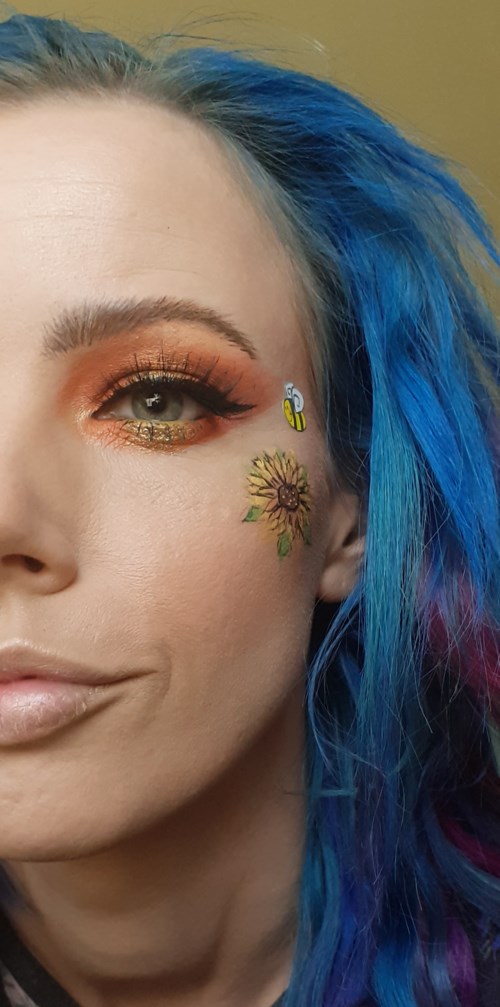 Ett sista bidrag i tävlingen får bli denna solros-inspirerade look och visst är det vetenskapliga namnet rätt roligt? 🤣⬆️ Tyvär bjuder jag inte på några riktiga blommor då jag varken har en trädgård & för att jag inte vill plocka vilda växter, då vi alla måste hjälpas åt att tänka på våra bin, humlor m.m🤗🐝🦋🐛🦗 Bjuder även på bilder på mitt nya *husdjur* tydligen som absolut skulle vara på mig hur jag än gjorde (jag vägra döda den lilla flugan oxå😅). Skulle göra alla detaljer o så kommer det lilla flugfänet och sätter sig i örat, ansiktet, ja överallt men de gick det å trots svordomar och evigt viftande😎😎🪰 Ha en jätteskön midsommardag finisar ❤️🌻🌞 #midsummer2021 #clarins