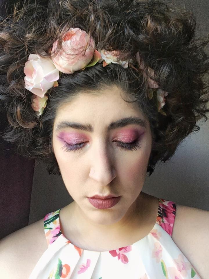 Boa tarde! Tudo bem? Jag är i Portugal, men var ju tvungen att försöka hitta lite tid till att göra en look för tematävlingen innan jag for! Egentligen såg jag inte ut så här till midsommar då jag var på en kakexikonferens då 😅 så jag försökte se ”professionell” ut 🤣 Men jag hade velat se ut så här! 🥲 Den här looken är inspirerad av Afrodite. Jag tänkte: vilka färger skulle hon använda? Och jag landade prompt i rosa-lila träsket. Jag använde LH cosmetics Spectral Palette för första gången. Jag började med att lägga den orange/persikofärgade skuggan som heter Dim, i inre ögonvrån och utåt mot mitten av ögonlocken. Sedan tog jag den bubbelgumsrosa skuggan med namnet Unknown, på resten av ögonlocken och i ögongloben. Därefter tog jag den lila skuggan, som heter Eerie, och satte den i yttre ögonvrån. Jag klappade in färgen där för att få det lite intensivt. Jag tog sen den auberginelila skuggan, Occult, på en tunn snedskuren makeupborste från LH cosmetics som jag hade sprayat med setting spray. Med den färgen drog jag en eyeliner längsmed ögat. Därefter använde jag en av GlossGods glittriga paletter (som tyvärr inte finns på Lyko) och satte lite olika nyanser av glitter över hela ögonlocken men mest mitt på. Utöver ögonen så var det mest mina ”vanliga” produkter jag använde. Hoppas nu ni alla haft en underbar midsommar med massor av sol och goda jordgubbar. Stor kram från mig. #midsummer22 #nyxprofessionalmakeup