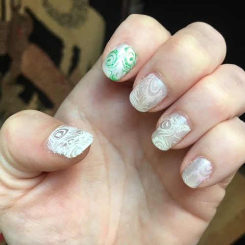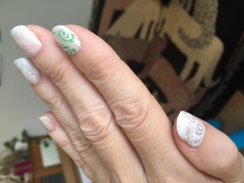 Hej igen Lykosarđđœđ„°đž! IgĂ„r gjorde jag en rufs tufs look med inslag lite romantik som fina Eva nĂ€mnde i sin kommentar âsom i en romantisk alla hjĂ€rtansdag photo shoot!â đžđ! Detta fick mig pĂ„ en ny idĂ© med ny nagellook som jag helt enkelt bygger vidare pĂ„ idag frĂ„n den look-kommentarenđ! Nails di Romanticađ! Evas profil hittar ni hĂ€rđžđđŸ lyko.com/sv/social/eva8323 Jag har med stamping stĂ€mplat mönstret pĂ„ naglarna! Med olika lack! Plates frĂ„n MOYOUđž! Jag gjorde min första video spontant direkt utan ens provfilmat ....som ni ser och hörđ ! TĂ€nkte mest ge er en blink av processen! Som sagt grunden finns dĂ€r redan med basecoat och Isadoras Pearl! Nu till forts ....Nails di Romantica dĂ€rav valda fĂ€rger icke skimriga för att fĂ„ till lite lĂ€tt spetsliknande struktur/mönster dĂ„ grunden redan Ă€r skimrigđđđœ! 1. Stampingplattan pĂ„ plats. Drar nĂ„gra drag med penseln Depends vita stampinglack över mönstret som jag önskar. 2. Direkt efter drar jag med skrapan över sĂ„ överflödigt lack dras med. 3. Rullar stĂ€mpeln över mönstret och överför sen det till nageln med lĂ€tt tryck. 4. DĂ€refter tar jag en bit tejp mot dynan som avlĂ€gsnar lacket efter varje tryck. Plattan kan rengöras med aceton. 5. VoilĂĄđđđœđž! Jag anvĂ€nder tejp maskerar runt naglarna för att undvika kladd pĂ„ huden. - PĂ„ tummen anvĂ€nde jag Depends vita stampinglack. - Pekfinger Depends Gröna lack nr 645 ( tror det har utgĂ„tt). - LĂ„ngfinger Isadoras Bardot Pink Rosa 615. - Ringfinger Depends Life is a Macaron Mint/grön 684. - Lillfinger Depends Life is a Macaron Rosa 687. Jag anvĂ€nde vanliga lack dĂ„ jag inte har Stampinglack i de fĂ€rgerna som jag önskade. Det kan funka rĂ€tt bra om de Ă€r lite tjockare konsistens. FĂ„r pröva sig fram liksomđ! Detta var dock första gĂ„ngen jag testade med dessa lackenđđœđ! Helt ok snyggt resultat med lite struktur och svagare nyans pĂ„ mönstret som gör det romantisktđž! Fin kvĂ€ll finisar Stor kram see ya soon đđœđ„°đžđ! TakeCare! #NailsByAka #Isadora #Depend #nailmatic