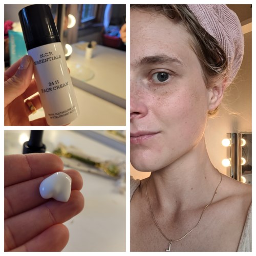 Har testat denna 24 H face cream nu i ungefär 3 veckor. Jag har väldigt torr hy och har väldigt lätt att få finnar. Jag använder inte ens 1 hel pump till hela ansiktet, så den är alltså väldigt dryg vilket är jätte bra då den kommer räcka väldigt länge. Efter att jag använt denna produkt de senaste veckorna så har alla mina torra fläckar och även den övriga torra känslan på min hud försvunnit helt! Jag kan inte minnas att detta någonsin hänt med andra produkter, så det är verkligen nytt och roligt för mig. Fukten i huden håller även ända tills jag använder denna nästa gång på nytt! Man får även ett så sjukt fint glow i ansiktet av denna produkt även när den har sjunkit in ordentligt, vilket jag älskar eftersom jag innan alltid känt och sett torr ut. Jag har som sagt väldigt lätt att få finnar, och har inte upplevt att jag har fått mer problem med den, men inte heller mindre. Det står att produkten ska förebygga ålderstecken, vilket jag inte riktigt kan svara på. Upplever inget speciell skillnad än så länge. Konsistensen är ganska tjock och lite tung på huden, till en början men tycker att de försvinner efter att den sjunkit in i huden. Men den är lätt att sprida ut i ansiktet. Den sjunker in snabbt, vilket är skönt för jag gillar inte att vara kladdig i ansiktet. Produkten är vegansk och innehåller hyaluronsyra bland annat. Förpackningen är i plast och har en pump på toppen. Förpackningen känns ganska plastig, men pumpen känns jätte bra, lätt att trycka ut den mängd man vill ha. Produkten är parfymfri vilket jag verkligen gillar, eftersom parfym kan ofta irritera huden och göra att man får fler finnar. Så den luktar alltså som en hudvårdsprodukt utan någon tillsatt doft, men den luktar inte illa. Kommer verkligen fortsätta använda denna och kan verkligen rekommendera om du letar efter en super återfuktande ansiktes kräm! #lykoinflutester #NCP