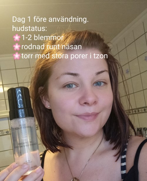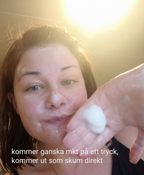 Genrellt tycker jag att enkla förpackningar ger en känsla av stilren lyx, men i detta fallet får jag istället upplevelsen av billigare industri utseende. Lite synd med tanke på hur OTROLIGT BRA produkten är! Pumpen är lätt att trycka ned vilket är bra med tanke på att det sällan tas hänsyn till de med nedsatt kraft i händerna när det kommer till förpackningar. Produkten kommer ut som ett härligt skum, det luktar lite lätt kemiskt men fortf fräscht. Ett pump ger ganska mkt produkt och räcker till hela ansiktet. Produkten klaimar att rengöra huden från makeup, effektivt och skonsamt. Den skall även lugna huden, återfukta och skall passa alla hudtyper. Jag skulle säga att den lever upp till alla sina klaims, förutom att jag inte kan säga hur produkten fungerar på en annan hudtyp, men för den som liksom jag har en torr och känslig hy med utbrott av rodnader och blemmor i tzonen, så är detta en riktigt bra produkt! Rengörande: tar effektivt och snabbt bort makeup! Huden känns fräsh och inte stramande efter användning. Det är nog den första rengöring jag provat som effektivt får bort även vattenfast mascara (i 2 omgångar) utan att vara oljebaserad och ge blemmor i resten av ansiktet! MEN! Den enda disklaimer jag har angående produkten är att jag provade att INTE använda min toner i några dagar (vischy) och då kom det både rodnad och blemmor! Men det är ju eg inget konstigt, min känsliga hy behöver en toner efter rengöring, med alla rengörande produkter jag testat genom åren. För att inte bara nämna allt ovan positiva om produkten så är den också riktigt dryg, se sista bilden hur lite som gått åt efter 3 veckor! Så värd prislappen? Jajamen! Trots minus med lite kemisk doft och att toner måste anv så kan jag inte ge mindre än 5/5 i betyg, den lever väl upp till standard och mer än så! #LYKOINFLUTESTER OCH #NCP