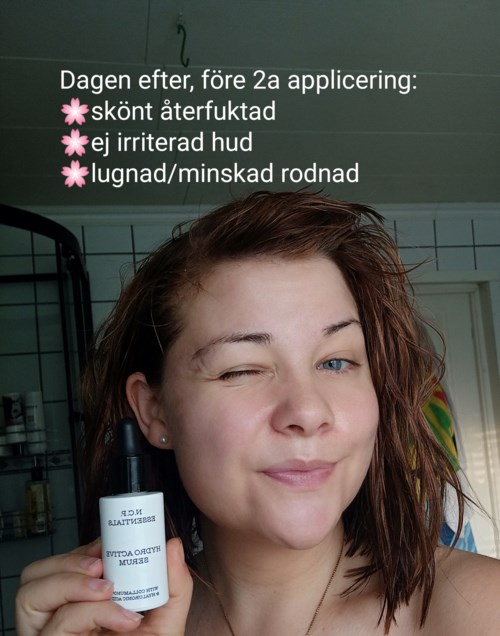 Som #influtester har jag fått testa #NCP Essentials Hydro Active Serum och till min förvåning funkade det faktiskt hur bra som helst på min bråkiga hy. Min hy brukar vanligtvis protestera vilt såfort jag försöker med serum. (Jag får prickar utslag och blemmor) Men just detta härliga serum gör att min hud på ett ögonblick känns mjuk ,återfuktad och med lagom glow. Jag har nu använt det varje morgon i flera veckors tid och min hud känns mycket lugnare än innan och framförallt har jag nästan inga blemmor alls längre 😍 Första veckan använde jag det både morgon och kväll men nu tycker jag det räcker fint att bara använda det på morgonen. Mina "torrhetsrynkor" syns nästan inte alls längre , men mina riktiga rynkor rår det inte riktigt på (alltså de där "fina" linjerna som kommer sig av att jag är 40+ och inte av att jag slarvar med min hudvård) Kanske behövs lite tyngre produkter mot dem. Men jag älskar att detta härliga serum är veganskt , parfymfritt och kommer med en hygienisk och lättanvänd pipett. Det funkar så himla bra för min känsliga hud att jag med glädje ger det högsta betyg. Otroligt prisvärt i mitt tycke. Dessutom är det tillsammans med 24 hour face cream en riktigt bra grund för makeup. 😍1 produkt i inlägget Min bråkiga hy älskar detta serum 💎326 visningar - Inlägget skapades 4 årBetyg: 5 av 5