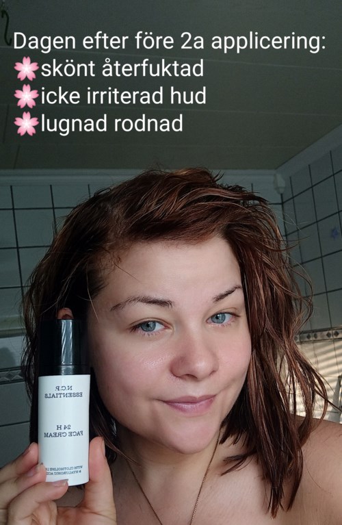 Detta är en face cream som claimar att återfukta huden i 24 timmar samt ge lyster i huden och motverka rynkor. Den skall även fungera för alla hudtyper och ska kunna användas både som dag och nattkräm. Jag har en torr och känslig hy, så kan därför inte svara för hur den fungerar på andra hudtyper,men för en torris är den riktigt bra! Förpackningen tkr jag ser lite tråkig ut, men det är en pumpflaska som är lätt att trycka på och gör det enkelt att dosera mängden. Konsistensen är som en tjockare kräm,mer lik en tjock nattkräm än en dagkräm som man gärna vill ska vara lite lättare och sjunka in fort. I början provade jag att använda denna morgon och kväll,men upplever att den gör sig bäst som nattkräm. Den återfuktar verkligen i 24 timmar och vissa dagar har jag inte behövt återfukta på dagtid alls. Jag har anv ett serum från samma märke i kvällsrutinen, i början före applicering,men sen har jag blandat krämen och serumet och lagt på tsm. Det har fungerat väldigt väl ihop! 👏🙏☺ Trots min torra hud så har jag risk för finnar i tzonen, men har inte upplevt det problemet med den här produkten. Skall läggas till att jag anv ett lugnande toner före applicering (men efter rengöringen) och uteslöt jag den så fick jag finnar. Men troligt berodde det på rengöringen. Efter 3 veckor kan jag konstatera att produkten håller vad den lovar, iaf för torr och känslig hy. Jag skulle inte säga att produkten är så värst dryg, men för att fungera så väl återfuktande så tycker jag helt klart att den är värd sitt pris! Trots minus i att den inte håller måttet på rynkor så ger jag produkten 4/5 i betyg, eftersom den lever väl upp till sin återfuktning och att min hud mår väldigt bra just nu! 🙏☺ #LYKOINFLUTESTER OCH #NCP