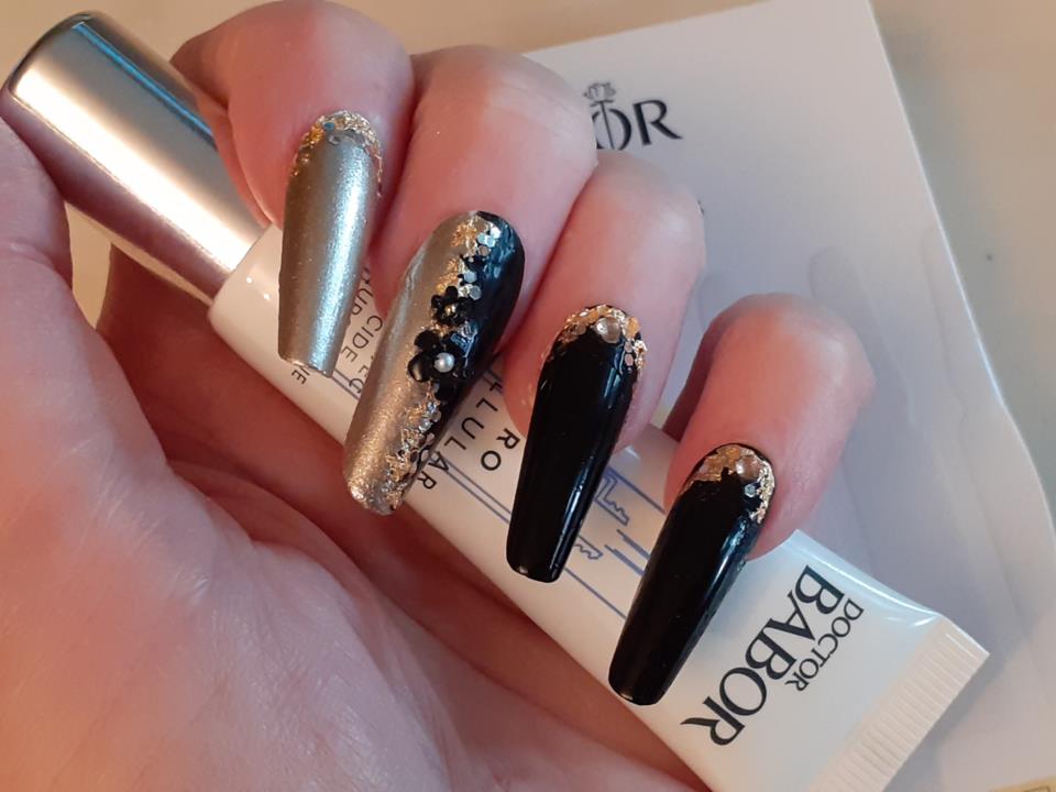 - Inlägget skapades 3 årBabor för mig är välförtjänt lyx, något att plocka fram när man känner att det lilla extra behövs 🌹🌹 Hade jag kunnat hade jag njutit av det oftare. För skojs skull tog jag oxå fram lite rekvisita, letade efter rosor men hade inget så det fick bli det jag använder just nu istället. ( fotona är lite suddiga pga mobilstrul) Nagellack jag använt är: Svart Opi Fall '22 Fall Wonders & Guldskimrande ZOYA Intriguing Lottie Övrigt jag använt är bladguld, ( ohhhh vilket j____a pilleri!!) glitter-cirklar,strassstenar blommorna är målade i svart akrylfärg, minibeads till mitten av blommorna. TACK till alla underbara som inspirerat mig att börja måla naglar! Tack vare er, har jag fått en ny hobby som jag älskar 🌹🌹 #totalbeauty #BABOR #opi #zoya #Evastipsotrixonaglar