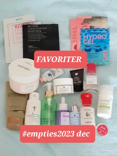 Här kommer mina sista #empties2023 dvs för december och NÄSTAN i tid😁 - ut med det gamla skräpet och in med det nya🧴🧴🛍 FAVORITER 🌸Benton "Goodbye Redness centella mask" är lika välgörande och skön för hyn som centellagelén från samma serie när rodnad och irriterad hy dyker upp👏🏻 🌸Benton "Fermentation mask pack" - undermasken med det intetsägande namnet och den trista förpackningen😅 🌸Purederm "Petal waltz under eye gel patches Rose🌹 - alltid lika sköna😊 🌸Essence Hydro Gel patches - funkar bra till skillnad från dem på burk som är en annan sort (se nedan). 🌸La'dor Dermatical Hair loss shampoo - sulfatfritt, milt K-beautyschampo mot håravfall, fet hårbotten och klåda. Skönt och passar mitt sköra hår bra men hjälpte ej mot min feta hårbotten tyvärr🤥 🌸Rahua Voluminous dry shampoo - för mig världens bästa torrschampo☺👏🏻 Nu har jag tyvärr gjort slut på båda flaskorna jag hade öppnade och får nöja mig med andra, mindre bra som står på kö innan nytt köp av Rahua🤥 🌸Estelle & Thild "Vanilla Tangerine body scrub" - bästa kroppspeelingen både vad det gäller riv och doft😍 🌸c/o Gerd Body lotion Blueberry Vanilla - så skön och helt otrolig doft: lite kola-aktigt vaniljig (ja, mkt söt så du bör gilla godisdofter🧁🍬). Lyckligtvis fick jag nu den stora tuben i julklapp🎁😊 🌸Tata Harper "Softening cleanser"👌 ersatte min dubbelrengöring de dgr jag inte stod ut med det i somras🙂 men är för uttorkande för mig resten av året. Världens dyraste ansiktsrengöring, månne😳? Amerikansk ekolyx🍀 kostar😁 🌸Sans Soucis "Daily Vitamins" Papayakräm👌 🌸Medik8 "Bakuchiol peptides"👌 men ohemult pris💸💸💸🤥 🌸Sans Soucis "Beauty elixir" Hyaluronic serum👌 🌸Bioderma micellärvatten - det med rosa kork👌 🌸Thayer's milda alkoholfria ansiktsvatten med ros🌹👌 🌸Zoya Goes Pretty Shea butter with rose oil👌 - ekologisk och vegansk fet, skön, välgörande vattenfri balm att ha till ansikte, hals, dekolletage och händer. Bra pris också🤑 🌸Pasta del Capitano "Sensitive" - brukar ej ta med tandkräm men den här är så mild, god och bra vid irriterade läppar att den måste nämnas (ja, den finns på Lyko😉). 🌸Brukar inte heller nämna deos men den här är för bra för att inte få vara med! Acorelle "Meadowsweet flower water long lasting efficacy" - snällaste o bästa ekodeon som klarar även min svettning☺👏🏻 Det var väl därför den utgick😒 OK 💮Biodroga "Lifting boost eye balm" - lyfter liiite men är parfymerad. 💮Selfie Project "Eye love" - sisådär ögonmask. NEJ - INTE FÖR MIG ⛔Purederm "Dark circle reducer eye patches Sunflower" - dyra och helt utan effekt. ⛔Essence "Hydrogel eye patches" är en hel burk med ögonmasker som inte gjorde något alls för mig😄 ⛔Yves Rocher "Oxygenating Scrub" - hårbottenpeeling helt utan effekt, precis som alla andra (enl frisör). - Recensioner av mig finns på en stor del av det som går att köpa här på Lyko - Med alla de här kladdiga förpackningarna säger jag "Hej då" 👋 till #empties-projektet i nuvarande form! Tar mer tid, kraft och lust än vad jag har pga sjukdomen ME. Kommer fortsättningsvis att förenkla inläggen och fokusera mer på bilder samt makeupåtgång dvs #projectpan ☺ också det startat av härliga Malin/"Malinadenfina" här på Social för ett par år sedan👍 Jag har själv lärt mig liiiite mer självbehärskning när det gäller spontana inköp och ffa att det oftast går att använda en skönhetsprodukt på mer än ett sätt😀 Tex har jag en oförskämt dyr nattkräm som numera jobbar som fotkräm🦶 pga sitt för starka syrainnehåll😅 ett ex på en nyttig läxa för oss skönhetshoarders😉 #empties2023 går nu över till #empties2024 samt #projectpan2024 ☺4571 visningar- Kommentaren lades 1 årFörstår det måste vara riktigt jobbigt! Går nog inte att alltid vara i balans men du får vara snäll emot dig själv när du behöver vila❤️tack snälla för att du läser mina inlägg vännen, det är mer än jag förtjänar jag som anstränger mig här så lite, men jag är jätteglad att ha dig som lyko-vän! Kram❤️1 gillar