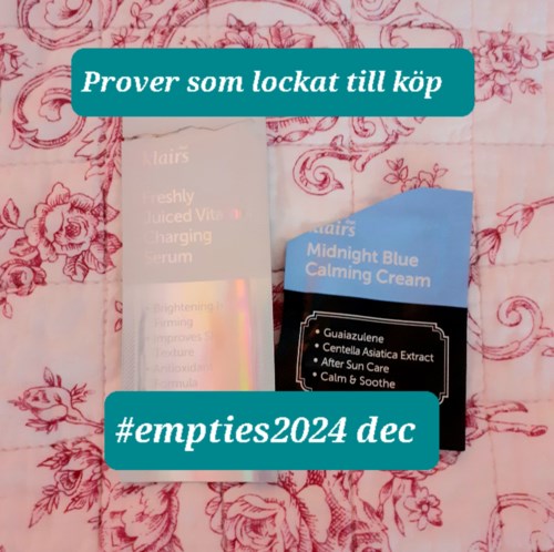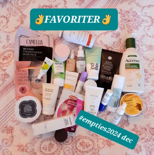 Här kommer mina decembersopor/ #empties2024 som jag nästan hade glömt bort☺ Ursäkta det konstiga ljuset - det var en mulen dag men så tittade solen fram lite oväntat = rosa bilder??? Som vanligt nämner jag bara en del av favoriterna för jag har skrivit om dem så många gr, resten syns på bilderna! Det mesta av det som finns att köpa på Lyko har jag recenserat😊 men köper mycket ekologiskt så allt finns inte här. För att hamna bland mina favoriter måste jag kunna tänka mig att köpa produkten igen🧴 👌FAVORITER👌 👌Dr. Hauschkas Silk body powder - talkfritt ekologiskt🌱 kroppspuder med rosendoft🌹 Räckte i evigheter och har även fått rycka in som torrschampo när jag inte haft ngt annat. 👌Q+A AHA exfoliator body scrub - kroppsskrubb med väldigt god, lite söt, mild doft. Fick i en box och har använt den på min KP på baksidan av överarmarna. Redan köpt ny! 👌Indy Beauty Intense bakuchiol hydrating face cream hade jag som nattkräm. Kompletterade med olja pga min mycket torra hy😊 👌Drunk Elephant Cera mighty eye balm - ljuvlig ögonkräm jag och min känsliga ögonhy älskade! 👌Schaebens Perfect skin beauty concentrate - skönhetskur i ampullform som gav den där perfekta ytan utan smink👍 Det var säkert därför den utgick🤨🤥 🤥Christophe Robin Cleansing volumising paste - en slags milt rosendoftande🌹 löddrande djuprengöring i skrubbsår som effektivt tog bort såväl fett som beläggning från stylingprodukter. Fick i en box och fick nu en ny i julklapp☺ 👌Burt's Bees lip scrub - mild, enormt dryg och mkt god läppeeling. 👌Grown Alchemist Age-repair intensive moisturiser. Fick i en box och gillade den så mkt trots den aptrista förpackningen att jag hade tänkt köpa en till tills jag såg priset🙄💸💸💸😁 👌Klairs Vitamin E mask med niacinamid - fantastisk fuktkräm/ nattmask/ antifinnbehandling och antiageprodukt i roligt studsig geléform! Enda hudvårdsprodukten min man och jag - som har helt olika slags hudtyper - delar☺ 👌Indy Beauty oparfymerad rengöringsmjölk för torr/känslig hy. Använt den som andrarengöring. Räckte i evigheter🤑 👌Aveeno Daily Moisturising yoghurt body cream med doft av aprikos och honung. 👌Bioderma Reactive skin spf 50 - lätt färgad solkräm som konstigt nog passar min superbleka hy i slutet på sommaren och hösten när den är 1 nyans mindre blek😁 och även dämpar rodnaden på kinderna jag får ibland. 😊OK, MEN KÖPER KANSKE INTE OM😊 😊Botanical Choice Intensive lip care gel patch - behaglig läppmask jag fått i bonus men märkte ingen som helst skillnad efteråt🤷♀️ 😊Beautypro Retinol under eye patch. Lite torr, märkte inget resultat åt något håll, vare sig positivt eller negativt. PROVER SOM LOCKAR TILL KÖP🧴 🧴Klairs Midnight blue calming cream - blir mer lagom till sommaren. 🧴Klairs Freshly juiced serum - kan tänja mig att köpa vid lockande kampanj🤑 ⛔NEJ - INTE FÖR MIG⛔ ⛔Comfort Zone Hydramemory depuff eye cream fick jag svullna ögonlock av andra dagen. ⛔Apoliva handkräm X 2 som jag fick i deras adventskalender 2023. Ok dagtid men tyckte inte alls om lukten på någon av dem. ⛔Yves Rocher Monoi concentrated hair and body wash hade tyvärr FÖR stark o söt doft så fick jobba som wc-rengöring istället🚽😉 ⛔Frank Body Dry-clean volume powder - torrschampo i pulverform med tvättmedelsstora hårda vita klumpar som lade sig överallt och aldrig löstes upp. Det var årets sista skönhetssopor och nya årets är redan på god väg🧴🧴🧼🧽🛍 allt inspirerat av Malinadenfina här på Lyko social, som drog igång både #empties och #projectpan här för att vi skönhetshoarders ska försöka använda upp det vi redan har istället för att genast köpa nytt☺ Det går ibland, ibland inte😉 #empties2024 dec5901 visningar- Kommentaren lades 10 månaderKul läsning! 😊 "Det var säkert därför den utgick" 😆1 gillar