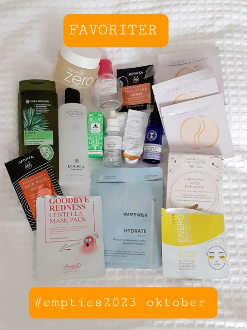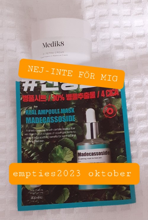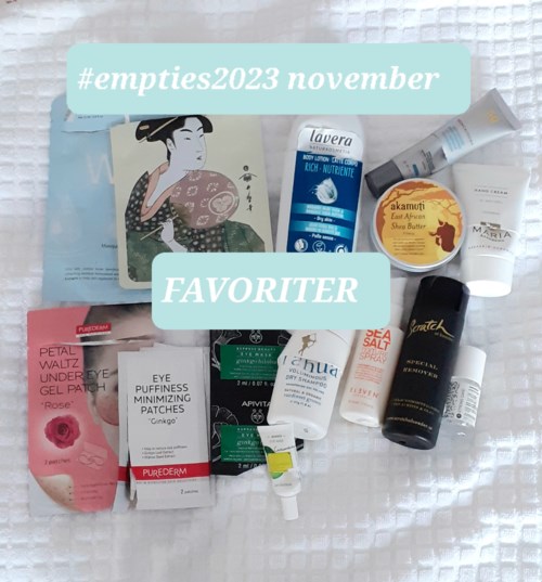 Här kommer äntligen min väääldigt sena #empties2023 för november☺ där jag och många andra försöker göra slut på det vi har, ofta på ett nytt sätt, innan vi köper nytt! Som de obotliga skönhetshoarders vi är lyckas det inte alltid...men tanken är god och har hjälpt mig att inte impulsköpa precis hela tiden (bara nästan). Recensioner finns under min profil på det mesta som finns att köpa på Lyko☺ Som vanligt många FAVORITER: ⭐Whens blå sheet mask "Water Wish" som ALLTID är slut😬 ⭐Mitomos sheet mask Royal Jelly & Cherry Blossoms - superba för torr hy båda två👏🏻 ⭐Apivitas Eyemask - dryg krämmask för ögonområdet ⭐Purederm Petal Waltz "Rose" ⭐Purederm Eye Puffiness minimising eye patches "Gingko" som känns som att ha plåster under ögonen😁 men ger bra resultat ⭐Korres flytande gelmask Cucumber eye mask - alla så bra👏🏻 ⭐Lavera Body Balm "Rich" ⭐Akamuti East African shea butter "Nilotica" - ekologiskt, kaffedoftande sheasmör, så underbart för händerna till natten👐 ⭐Maria Åkerberg Hand cream ⭐Skinceuticals Advanced Brightening UV Defense Sunscreen ⭐Eleven Sea Salt spray ⭐Rahua voluminous dry shampoo ⭐Nailmatic Strengthener - hyfsat miljösnäll nagelstärkare ⭐Scratch Special remover - dito nagellacksborttagning OK 😐Estelle & Thild Body Soufflé Coconut Cedarwood - lite klen konsistens och cedern lyser tyvärr med sin frånvaro🤪 😐Biodroga Hydra Boost Concentrate 😐111Skin Cryo de-puffing eye mask NEJ ⛔Evolve Nightly renew facial cream - luktar kattpxxs i min näsa men min man sade att det var överdrivet men att "Den luktar kanske inte så gott"😅 Det var ett långdraget lidande att göra slut på den🤣 ⛔Depend Cuticle peeling 02 - gjorde inget alls🤨 ⛔Antipodes Divine Face Oil med avocado och nyponfröolja - luktade allt annat än gudomligt. Jag fick association till rökt fisk🐟 som är mkt gott att äta men inget jag vill ha i ansiktet. Blev istället en benolja! Kom sen på att jag starkt ogillar lukten av avodoolja även om jag älskar att äta avocado🥑😋😃 #projectpan2023 💖Jane Iredales härliga mascaraprimer PureLash Lash Extender & Conditioner som även är en av novembers FAVORITER 😍 Vårdar och förlänger fransarna på sikt samt gör de jättesnygga under mascara + mascaran blir nästan vattenfast👏🏻 Började genast på en ny🙂 Det var allt mitt skönhetsskräp för november 2023🧴🧴🛍😊 Varm TACK till härliga Malin - Malinadenfina här på Social - för det här trevliga, nyttiga och ffa roliga initiativet🙏🥰 (Törs inte längre länka henne pga underlig teknisk bugg enligt Lyko🤔🙄😛)2953 visningar - Inlägget skapades 2 årHär är mitt senaste skönhetsskräp dvs #empties2023 oktober och #projectpan2023 oktober🧴🧼🛍😃 FAVORITER JAG OFTA KÖPER👌 🌸Yves Rochers Pureté - schampo för fett hår som räddade min feta, svettiga😰 hårbotten under sommaren så det inte såg kanonfett ut precis jämt😁 🌸Maria Åkerberg Conditioner Sweet Breeze - lätt balsam för fint, tunt och platt hår. 🌸Apivita Hair Mask Orange - lätt och fuktgivande apelsin🍊hårinpackning som ger mer fukt än fett - perfekt för oss med fint och platt hår med fet hårbotten😊 🌸Biodermas micellärvatten med rosa lock = den bästa varianten för torr och ömtålig hy💖 🌸Marina Miracle Argan Night serum - oljeserum med skonsamt peelande AHA-syra från frukt🍏 🌸Dr. Hauschka Rose Day cream Light - sommarkrämen för mig som i år räckte ända in i oktober för att jag också hade en kräm fr Medik8 (se under "Nej"). 🌸Apivita Face scrub Apricot - mild syrafri kornpeeling med aprikoskärnor🍑 - också en sommarfavorit, speciellt till hals och dekolletage😊 🌸Neal's Yard Rehydrating Rose oil - lätt olja med ros🌹- återkommande sommarfavorit som också den räckte för länge pga konkurrens med annan (sämre) olja! 🌸Apolosophy Active+ Peptide Serum - underbart fuktserum med peptider, SÅ bra👏🏻 och prisvärt🤑 🌸Sheet masks🎭 - When Water wish - sheetmask för torr, trött och känslig hy. På mig tar den även otippat ner svullnad👍 Svår att få tag på, är jämt slut🤥 men anv minst 1/månad🙂 - Benton Goodbye Redness - lugnande sheet mask med cica för irriterad o känslig hy - bra att ha hemma som akutmask vid plötslig hudirritation⛑🩹 🌸Ögonmasker👀 - Catrice ögonmask med koffein och ginseng - överraskande bra mot svullet under ögonen👏🏻 - Gabrielle Salvete Chamomille Gold eye mask - lika bra de👏🏻 - Patchology Serve Chilled Bubbly eye gels - superbra men superdyra💸🤥 🌸OCH Den gula Banila var jättebra men blir inget omköp pga djurförsöken de ägnar sig åt👎 OK🙂 ➡️Skincity Milky moisture toner - mjölkigt ansiktsvatten. Passar bäst för hy som ej är så torr som min! ➡️No7 Lash & Brow Perfector - genomskinlig bryngelé fr No7 adventskalender 2022. Skonsam och medelbra! SMINK💄#projectpan2023 👝Lily Lolo Mineral Foundation i "Porcelain" = ljusaste nyansen. Mkt fin mineralfoundation för känslig hy👏🏻 och bra för den ned orenheter, fet hy mm. Pga min torra hy räckte den enormt länge då jag bara kunde ha den på tinningarna sommartid😁 men den luktade lika fräscht som den dag jag öppnade den (= för flera år sedan😆)👍 👝No7 Lash & Brow Perfector - bryngelén som räckt jättelänge👏🏻🤑 Går tyvärr ej att få upp allt🤥 NEJ - INTE FÖR MIG⛔ ➖A'pieu Madecassoside sheet mask - gjorde inget alls trots till synes fint innehåll🤔 ➖Medik8 C Tetra Cream - krämen som begick 3 brott: värdelös👎svindyr💸 och luktade illa👃🏻🤢 som lök🧅 på laxen🐟 MEN jag lyckades göra slut på den efter hårt slit😅 PROVER SOM LOCKAR TILL KÖP🧴 🍀Babor HSR Lifting anti-wrinkle eye cream👁 Ögonkräm som både ger näring, tar bort svullnad och rynkor👏🏻 Dock för dyr men drömma kan man