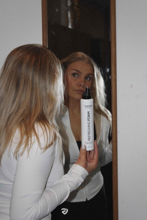Refreshing Foam är ett torrschampo i mousse form som fräschar upp håret utan att tynga ner eller lämna rester. Skummet absorberas snabbt, ger luftighet och fräschet och passar dig med hektiska dagar efter träning eller jobb. Tips! Föna gärna in moussen för snabbare resultat och extra volym. #VisionHaircare #MadeInSweden #Vegan #Haircare #Hårvård #RefreshingFoam #DryShampoo #TorrSchampo1 produkt i looken Torrschampo i mousseform3954 visningar- 😍🤗❤️1 gillar