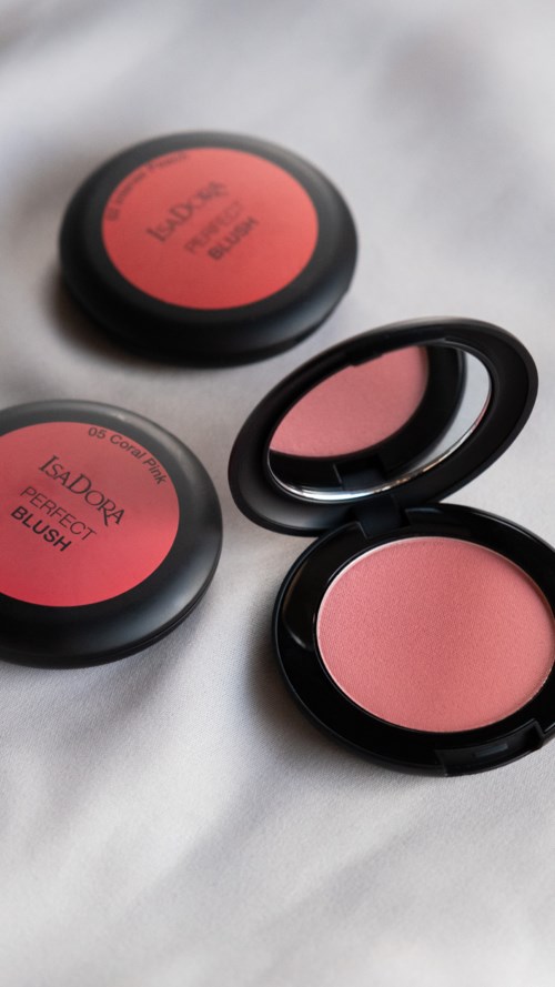 Jag fick testa 3 produkter från Isadora och detta ”Perfect blush” rouge är det jag gillar allra bäst. Jag ÄLSKAR färgen! Den finns i flera olika nyanser och i både matt, satin och skimmer. Jag har den i färgen 04 ”Rose perfektion” vilken är en neutral rosa nyans med aningen skimmer men inget glitter! Den kommer i bra rese storlek, en liten rund ask med generös spegel inuti locket! Man får 4,5 gr produkt, asken känns lite hal i handen och jag har varit rädd för att den ska glida ur händerna men det har den inte gjort! Men färgen är underbar, den har den perfekt rosiga rosa nyans som ger ett väldigt fräsch utseende. Skimret ger den extra touchen helst nu på sommaren! Första gången fick jag för mycket på borsten, var inte beredd att den släppte så mycket pigment så här finns pigment. Men den ljusa färgen gör att man behöver bygga upp den och det går men till viss del. Så vill du ha sommar fräscha kinder eller vinter rosiga så är detta en färg du ska ha i åtanke! Jag tror denna färg passar de flesta hudtoner och året om, den smälter lätt in i huden och ger så där lagomt fräscht ”Glow”. Den smälter enkelt ihop tillsammans med både bronzer och highlighter. Kan inte med ord beskriva hur nöjd jag är över den! Jag rekommenderar den verkligen till Er andra! #lykoinflutester #isadora #rouge