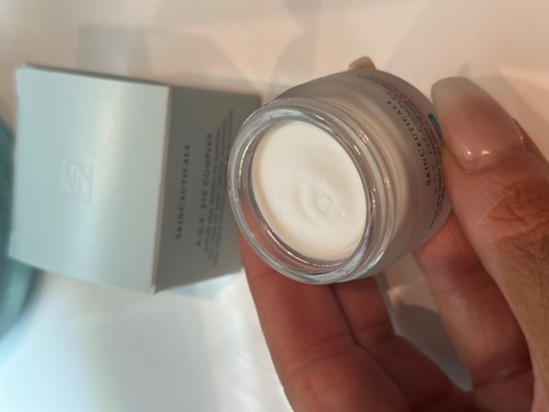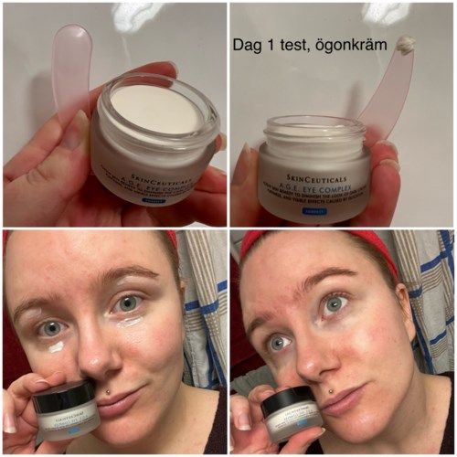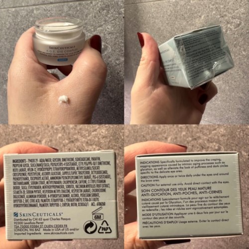 Jag har velat prova denna ögonkrämen sen jag hörde talas om SkinCeuticals för många år sen och ännu mera efter första kursen och NU har jag fått möjligheten! 👏🏻 📄Ögonkräm med fokus på anti-age för en mogen hud som på ett markant sätt minskar synligheten av tydliga ålderstecken i området runt ögonen. Det är precis vad jag behöver som nyligen fyllde 45 🤭 och har fått små linjer, är väldigt tunn (blå kärl syns) på vissa delar under ögonen och i allmänt behov av både fukt & näring. 👀 Vad innehåller då A.G.E Eye Complex som gör den så speciell? 💡 •Formulerad med Proxylane™ som utvinns från björkträ 🪵 och som lätt förklarat är en patenterad molekyl som återställer hudens fuktnivåer och näringsämnen så att hudens fasthet förbättras och synligheten av rynkor och skrattrynkor reduceras. •Blåbärsextrakt 🫐 hjälper till att förebygga framtida rynkor och kråksparkar. •Komplex av flavonoider och synergistiska peptider 🧬 hjälper till att minska mörka ringar och påsar under ögonen samtidigt som hudens fasthet och ton förbättras. •Optiska diffusorer 💫 sprider ljuset så att mörka ringar minimeras och trött ögonhud får en uppiggande lyster. Den har en rik-torrfinish-kräm-textur skulle jag vilja kalla den. 😄 Först upplevde jag den som matt, icke-fet och lite torr men ändå väldigt krämig på huden. Jag kände mig något stram men efter några dagar ändrades detta till en mera återfuktande och mjukgörande känsla. 💦 Hudvård måste man ha tålamod med men vissa effekter som den återfuktande känner man alltid snabbare men även den uppljusande och avsvällande kan man känna av tidigare (dock tar det ca en månad för huden att nybildas/ för att man ska kunna uppleva en mera permanent effekt) men de mera anti-age-inriktade lär ta minst 12 veckor så det är bara att fortsätta använda morgon och kväll på en rengjord hud, under och över ögat (ej ögonlocket). Jag gillar att ”jobba” den lite mellan två fingrar innan jag smörjer ut den lätt för att sist klappa in resterna. 👉🏻😃👈🏻 Jag har nu använt den i en månad och väldigt mycket är kvar i glasburken (föredrar tub 😬) som ni ser på ena bilden för det behövs vääldigt lite som jag tar med spatel (ingår inte). Den fungerar väldigt bra under spf och makeup. 👍🏻 Nu känns det som jag inte kan vara utan den och jag bara väntar på hur ögonhuden kommer kännas när burken är slut. 🤩 Tack snälla för att jag fått prova! 🤍 It’s a keeper! #skinceuticals #testbylyko - Användarens roll: Butiksmedarbetare på Lyko.Inlägget skapades 2 årBetyg: 3 av 5