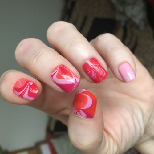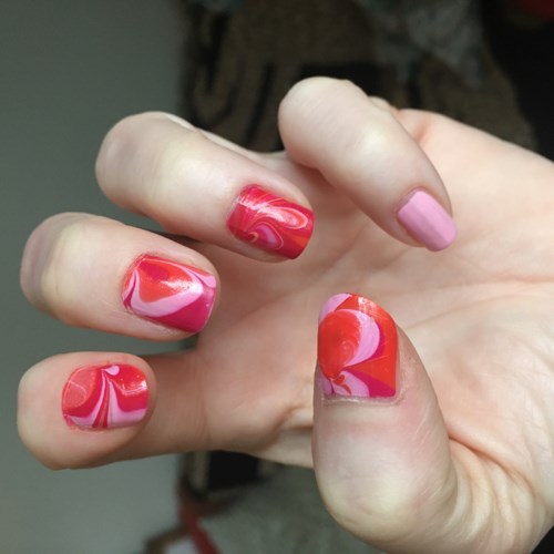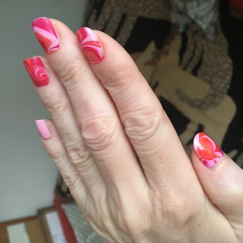💕🧡Våriga Water Marble nails med härliga spirande färger rosa cerise & orange från Make Up Store❤️😊! Det var tänkt från början att jag skulle göra en dry Marble ...😩😂...det floppade sig totalt så det fick bli Water💙 istället😊! Älskar denna nagelkonst...det är både roligt och utmanande med hela processen....! När den väl är lärd så sitter den i ryggmärgen 🙌🏽! Det finns alltid något nytt att lära inom tekniken med olika mönster! ”Vattenmarmornaglar är en teknik för fingernagelkonst som innebär att nagellack tappas i klart vatten och skapar ett mönster på vattenytan; mönstret överförs sedan till naglarna.” Fin lördag alla godingar njut av våren och take care🤗💖☀️🌸 #spring22 #itcosmetics #NailsByAka1 produkt i looken 🧡💕Våriga WaterMarble Nails🧡💕 - Användarens roll: Kundtjänst på Lyko.Inlägget skapades 3 år