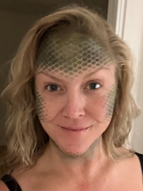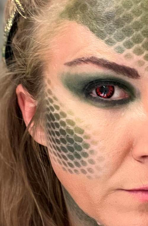 Jag i mitten av oktober: ”Jag ska inte engagera mig så mycket i Halloween i år” Också jag, fast på Halloween: ….👻😅 I år blev det någon medusa/orm-hybrid och det gick så klart utmärkt att nörda ner sig i grejer även till det! 😁 ANSIKTE Jag började med att lägga ögonskuggsprimer #urbandecay på de områden jag skulle måla ”fjäll”. Sedan tog jag ett par fisknätstrumpbyxor och drog över huvudet och duttade ögonskugga på de områden jag ville ha fjäll på. Jag hade turen att hitta centrums sista gröna palett från #elf (en skugga var trasig så det var nog ända anledningen att den var kvar) och den var ju PERFEKT till detta. När jag tagit av strumpbyxorna pudrade jag med #nyx HD-puder, som blir ofärgat, och därefter settingspray #urbandecay . Sedan gick jag in med #isadora matte primer och #lumene blur foundation där det saknades. Ännu en sväng med nyx hd-puder och settingspray ÖGON Ögonen fick samma bas med eyeprimer och skuggorna från elf. En svart skugga från #thebalm gav lite djup och sot. Jag använde kajal grå #loreal både kring fransrader och bryn. Ett hack jag kom på när jag glömt kajal en gång var att använda mascaran, ta lite av den på en borste, eller baksidan av en matkniv som var lösningen då 😅 och måla/stämpla. Eftersom #bbia -mascaran är det mest vattenfasta jag vet så la jag även en linje av den längs varje fransrad och använde den med mascaraborsten till fransarna Ett par röda linser från lokal butik HÅR Jag preppade håret med mousse och satte upp en tofs med delar av håret uppe på huvudet. Därefter drog jag slingor runt ormarna och fäste slingorna med nålar. Sprayade allt med #rco finish spray. Ormarna var svarta men målades med nagellack och akrylfärg. NAGLAR Jag målade svart bas och målade tråden på plackers och ”stämplade” övriga färger lite här och där. Jag har använt lite random märken. Överlacket är från #sechevite DOFT #ysl Opium Snyggt och välordnat hemma efter ”extra allt-sminkning” 😅 Sista fotot med vitt över ögonen (jag besparar er mina ögon som är röda av både linser och att klockan är runt 05 på morgonen. Ser ni vilken sjuk hållbarhet sminket fick?! 12h smink varav fem på fest och fem på krogen. Det var helt klart en bra idé att använda ögonskuggsprimern även under mönstret. Mönstret går liksom inte heller att bättra på när det är satt så jag är glatt överraskad 🤗 #halloween24