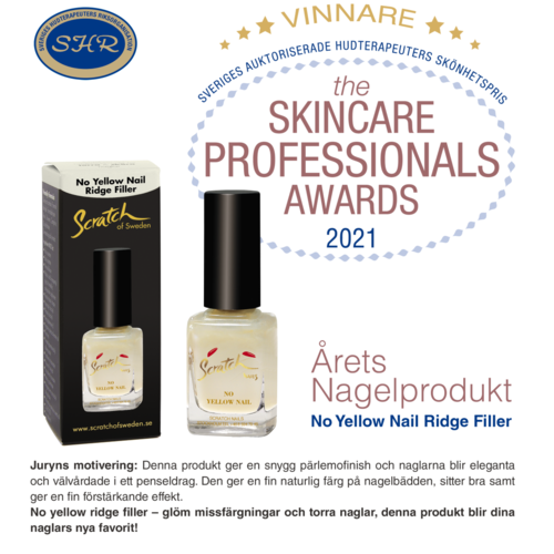 - Inlägget skapades 4 år🏆And the winner is…… NO YELLOW NAIL RIDGEFILLER #åretsnagelprodukt #theskincareprofessionalsawards #scratchofsweden Juryns motivering: Denna produkt ger en snygg pärlemofinish och naglarna blir eleganta och välvårdade i ett penseldrag. Den ger en fin naturlig färg på nagelbädden, sitter bra samt ger en förstärkande effekt. No yellow ridge filler - glöm missfärgningar och torra naglar, denna produkt blir dina naglars nya favorit! . NO YELLOW NAIL RIDGEFILLER är ett vårdande, utjämnande stärkande kurlack för ojämna, räfflade och missfärgade naglar. Jämnar ut och förskönar. Återställer nagelns spänst och styrka. Berikad med Vitamin E-Acetat, Kalcium, Silica, Kisel, Zink och sjögräsextrakt. Verkar återfuktande och återuppbyggande. Snygg att bära ensam, men kan även användas som baslack under färglack. SOM BASLACK - ett lager under ditt färglack. Jämnar ut, skyddar från missfärgning och uttorkning samt förlänger hållbarheten på din lackning. SOM KURBEHANDLING – Appliceras lager på lager. Ett tunt lager dagligen vårdar skyddar och förstärker. Efter ca 7 dagar-tag bort med Scratch Special nagellacksremover och upprepa rutinen.81 visningar